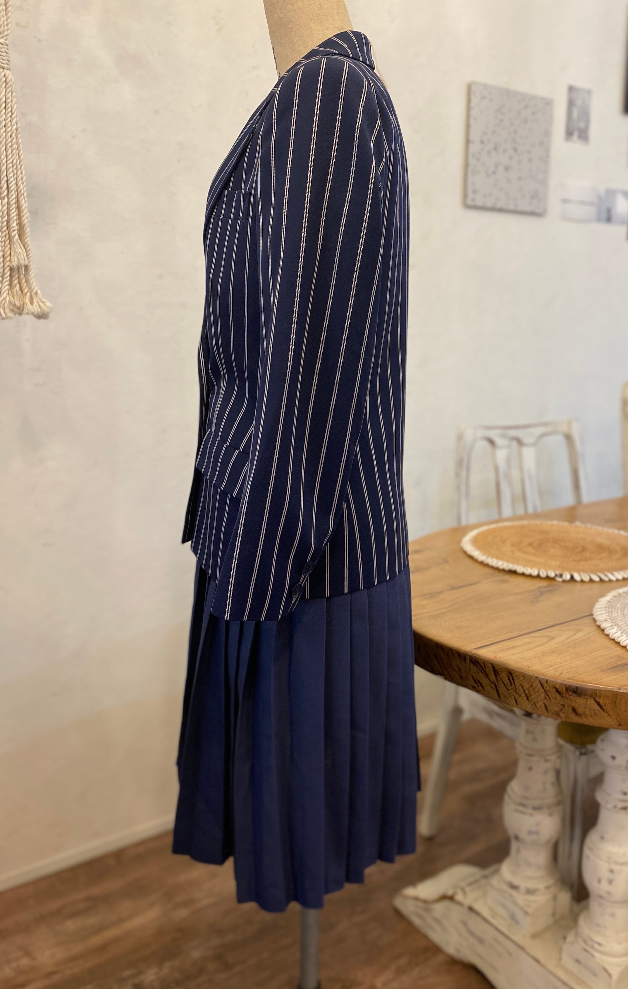 きちんと感が出るストライプなジャケットはカジュアルな場面にもフォーマルな場面にも活躍します。特に目立ったシミや汚れはなく、非常に綺麗な状態です。