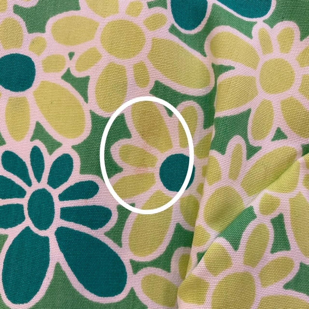 レトロな花柄がキュートなワンピースです。薄いシミがいくつかありますが目立ちません。