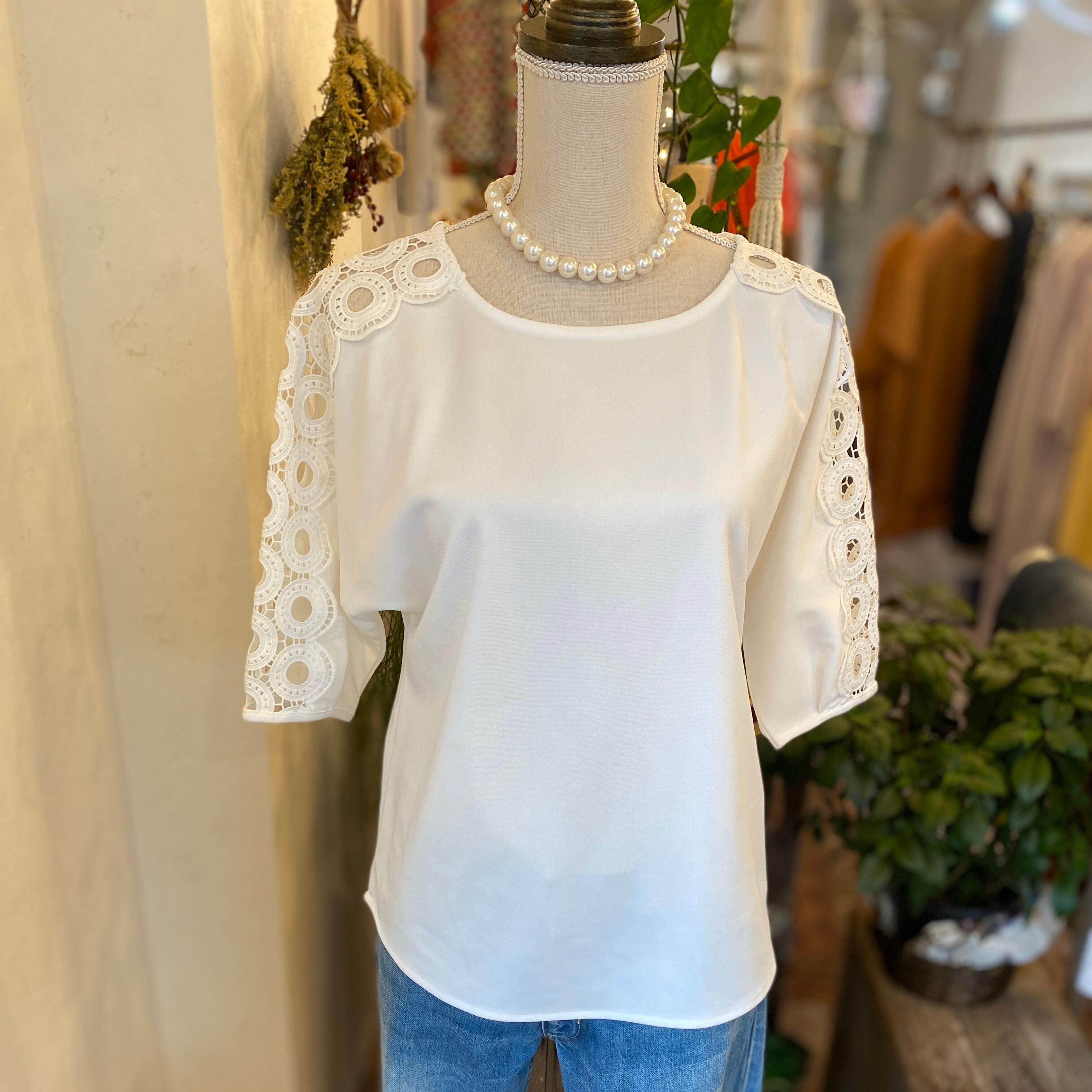 袖のレースによる肌の透け感がこれからの季節にぴったりです♪