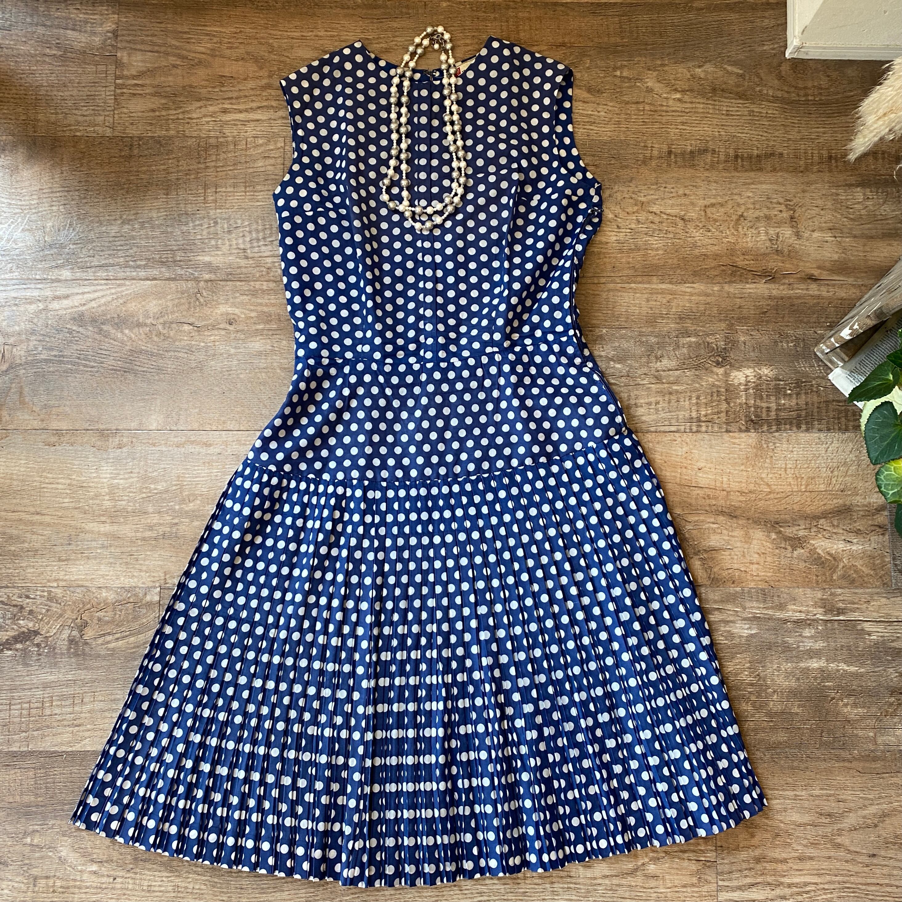 ワンピース: フランス古着LE SIGNE DE PARIS ドットプリーツワンピース