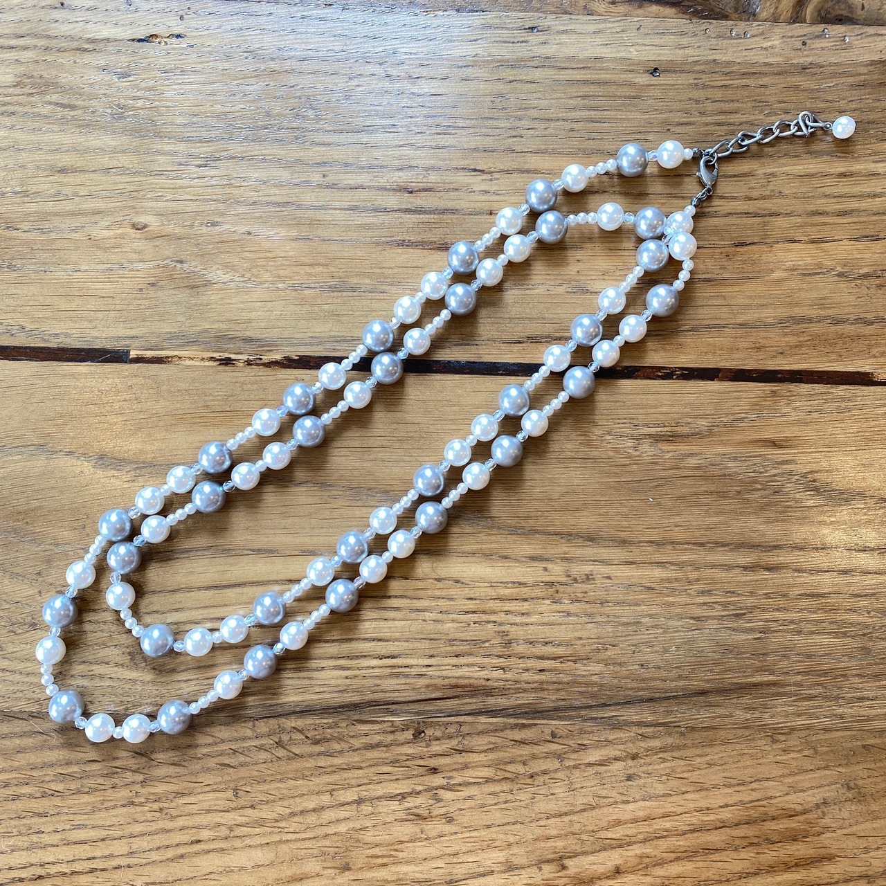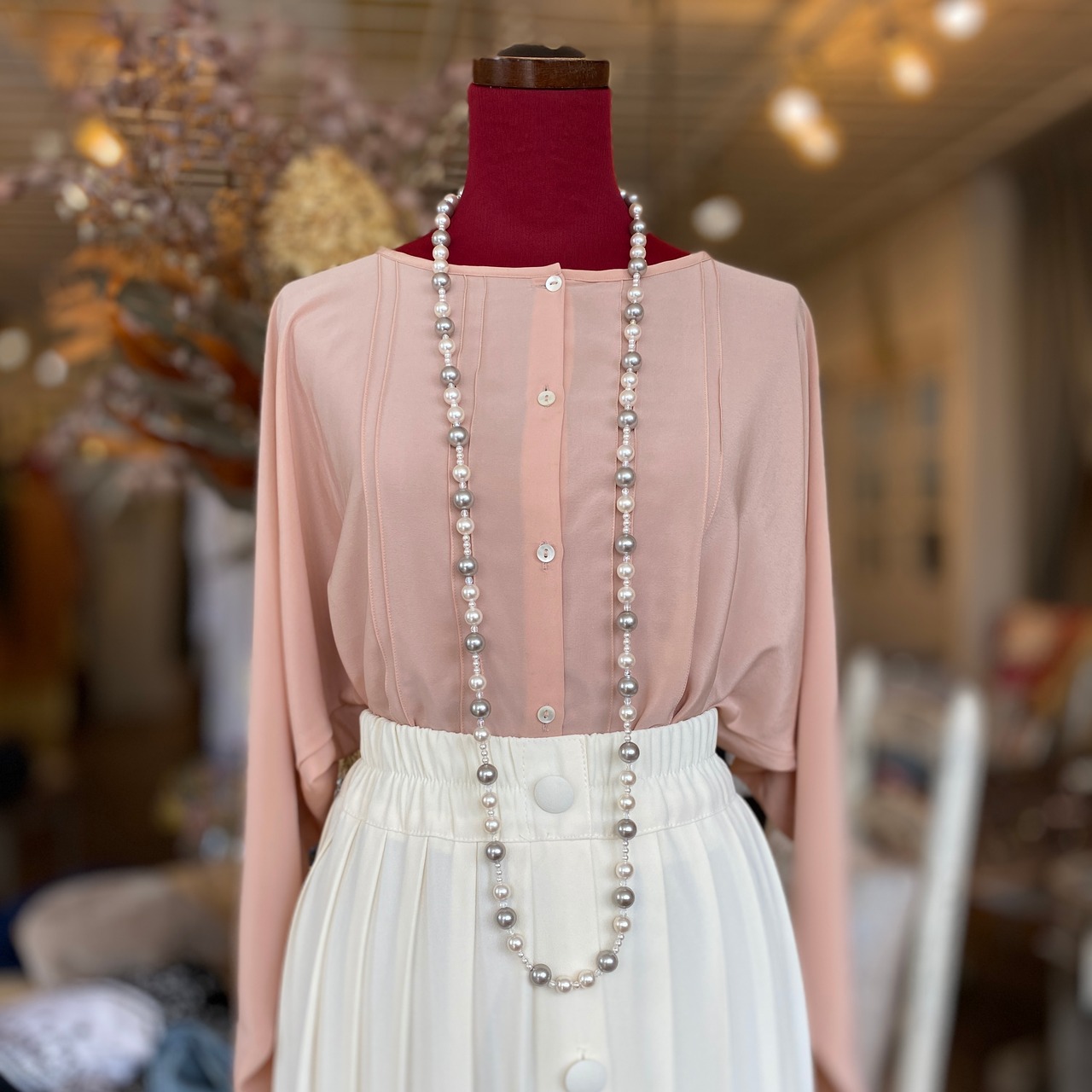 大小のパールとビーズが上品で可愛らしいネックレスです。