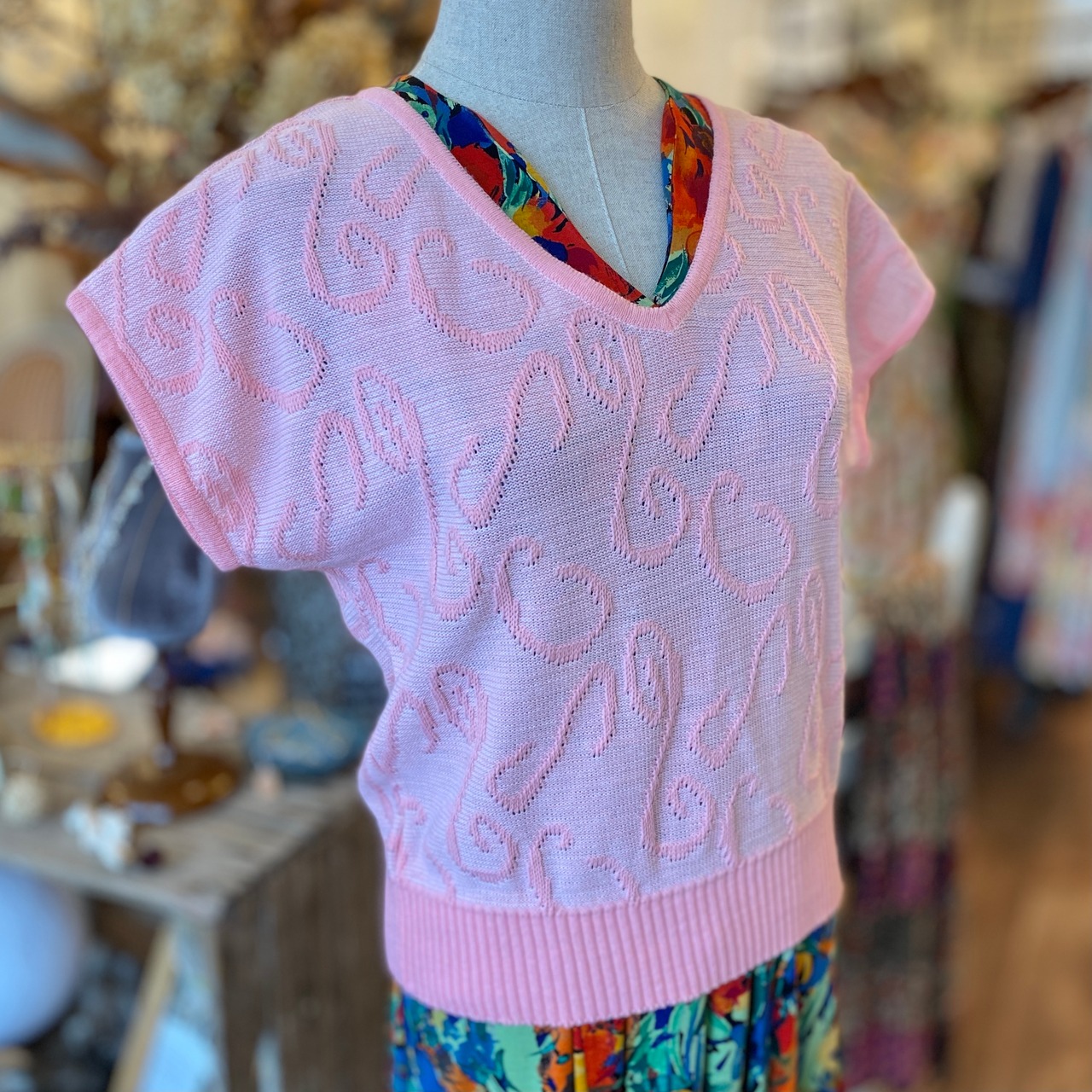 古着 VEB Berliner Strickmoden Vネックピンクベスト