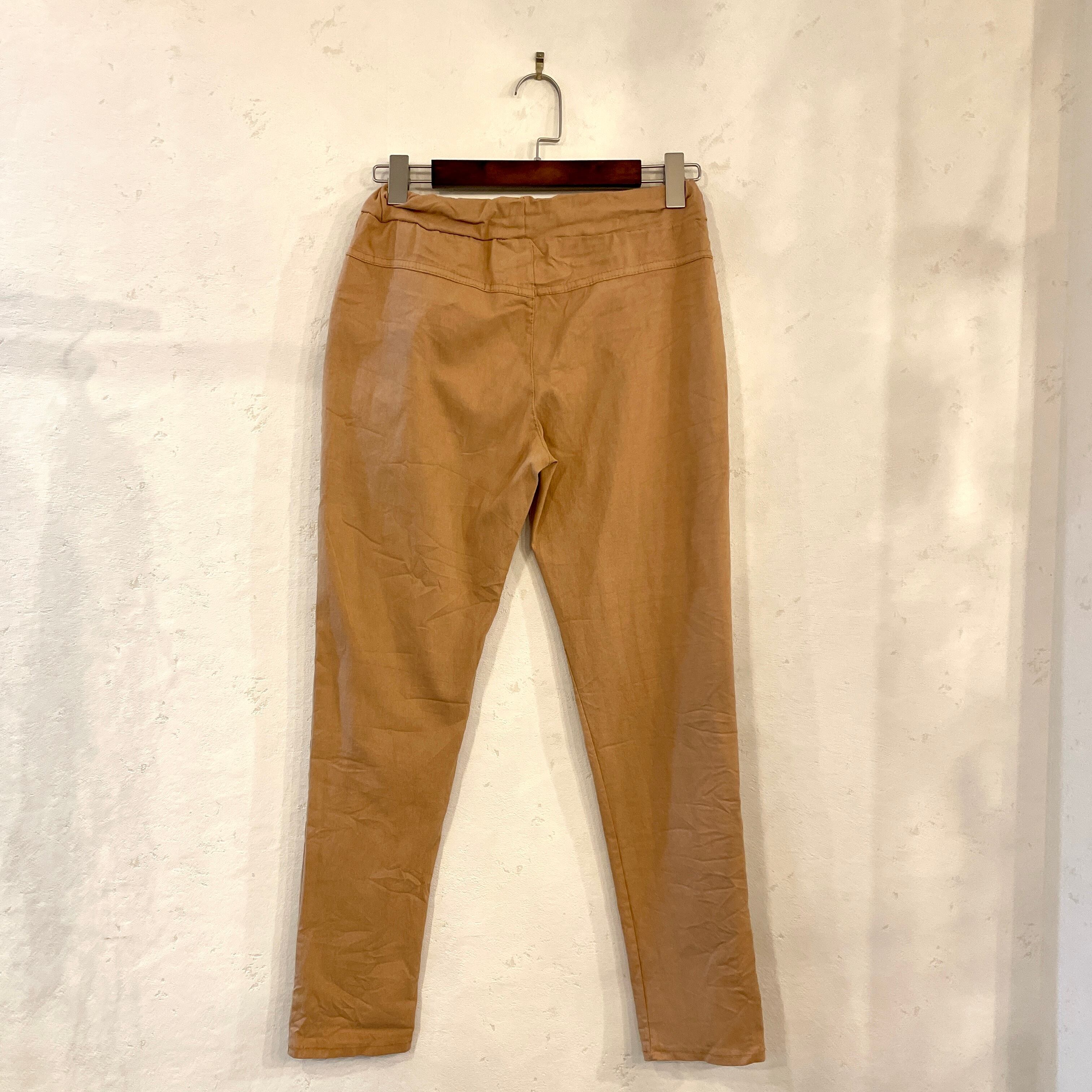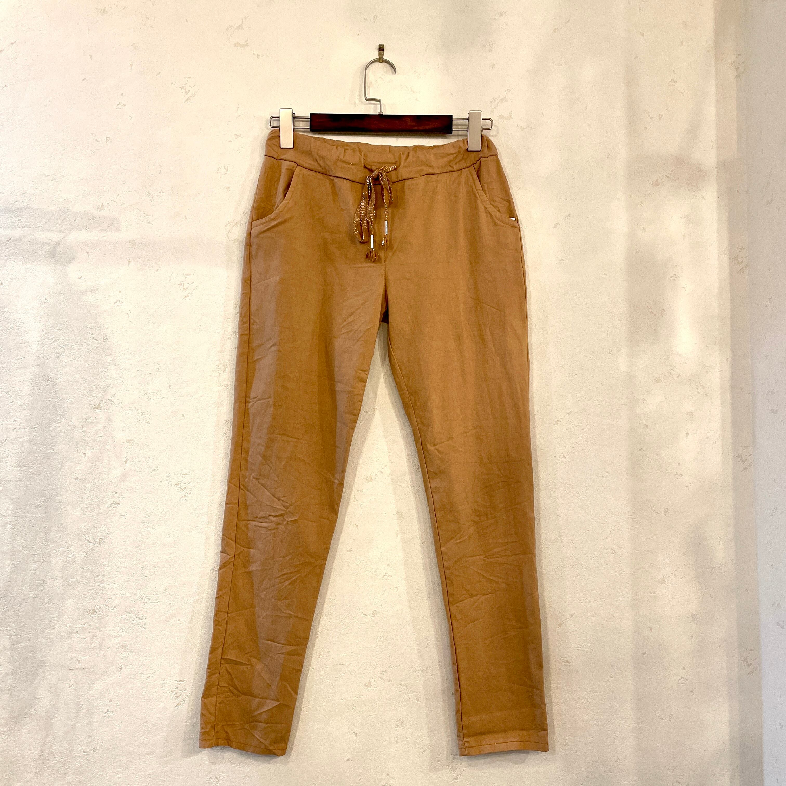 イタリア製 ウエスト紐 パンツ <ブラウン>