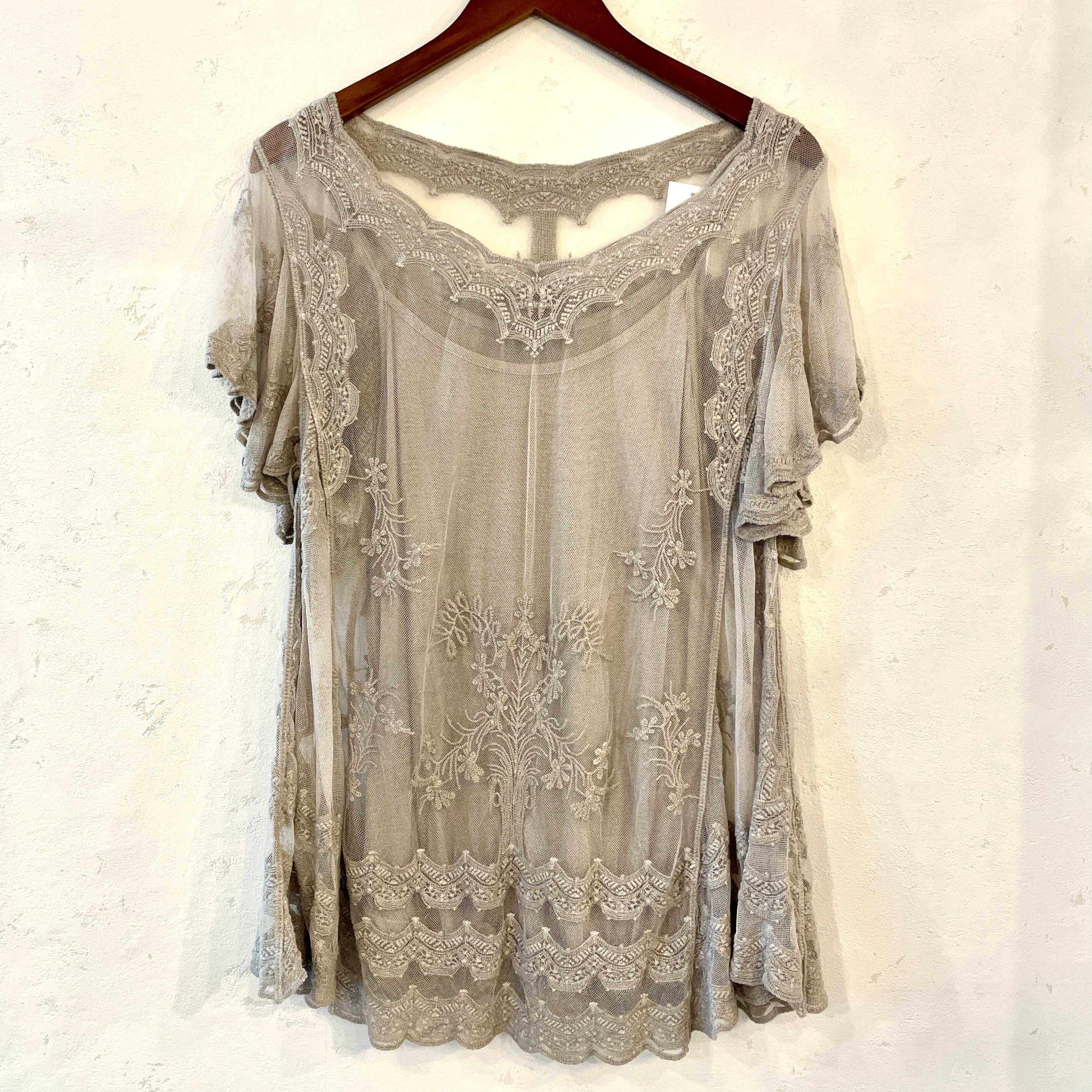 レース生地で涼しげなデザインとなっています。 裾が広がっていてゆったり着れるサイズ感です♪ 付属のキャミソールは取り外し可能です。