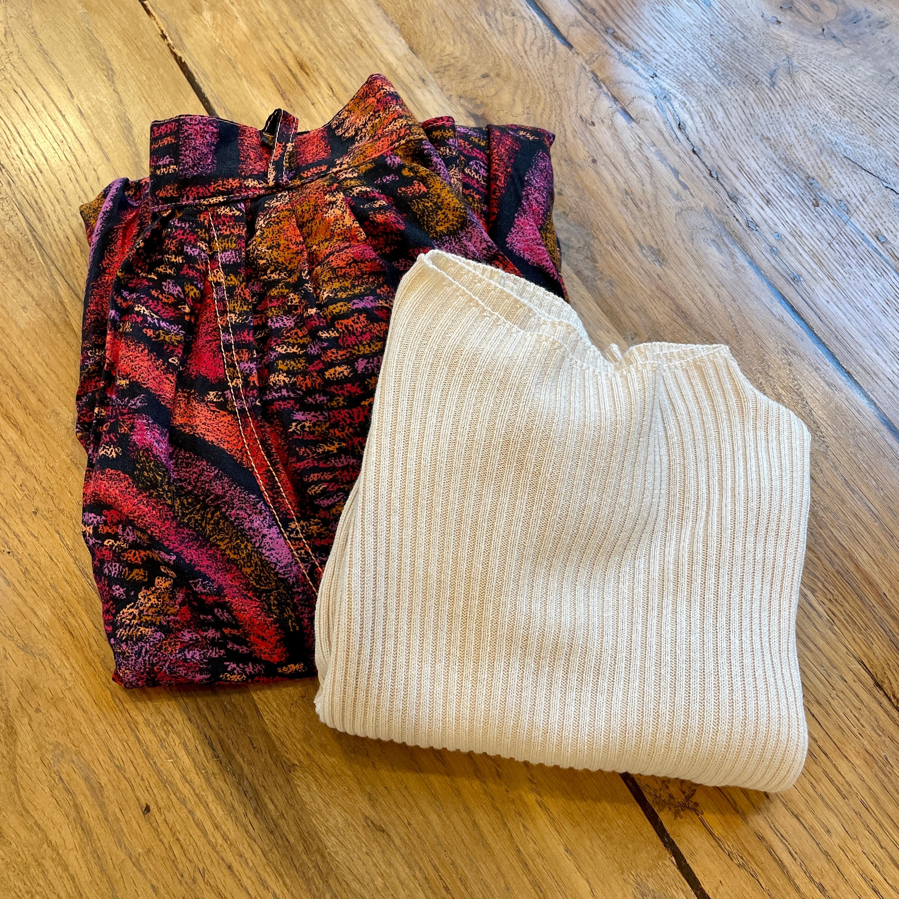 [コーデ買い] で【 30%OFF! 】2点 イタリア製 半袖ニットトップス<ベージュ> + フランス古着 総柄ボトムフリルスカート