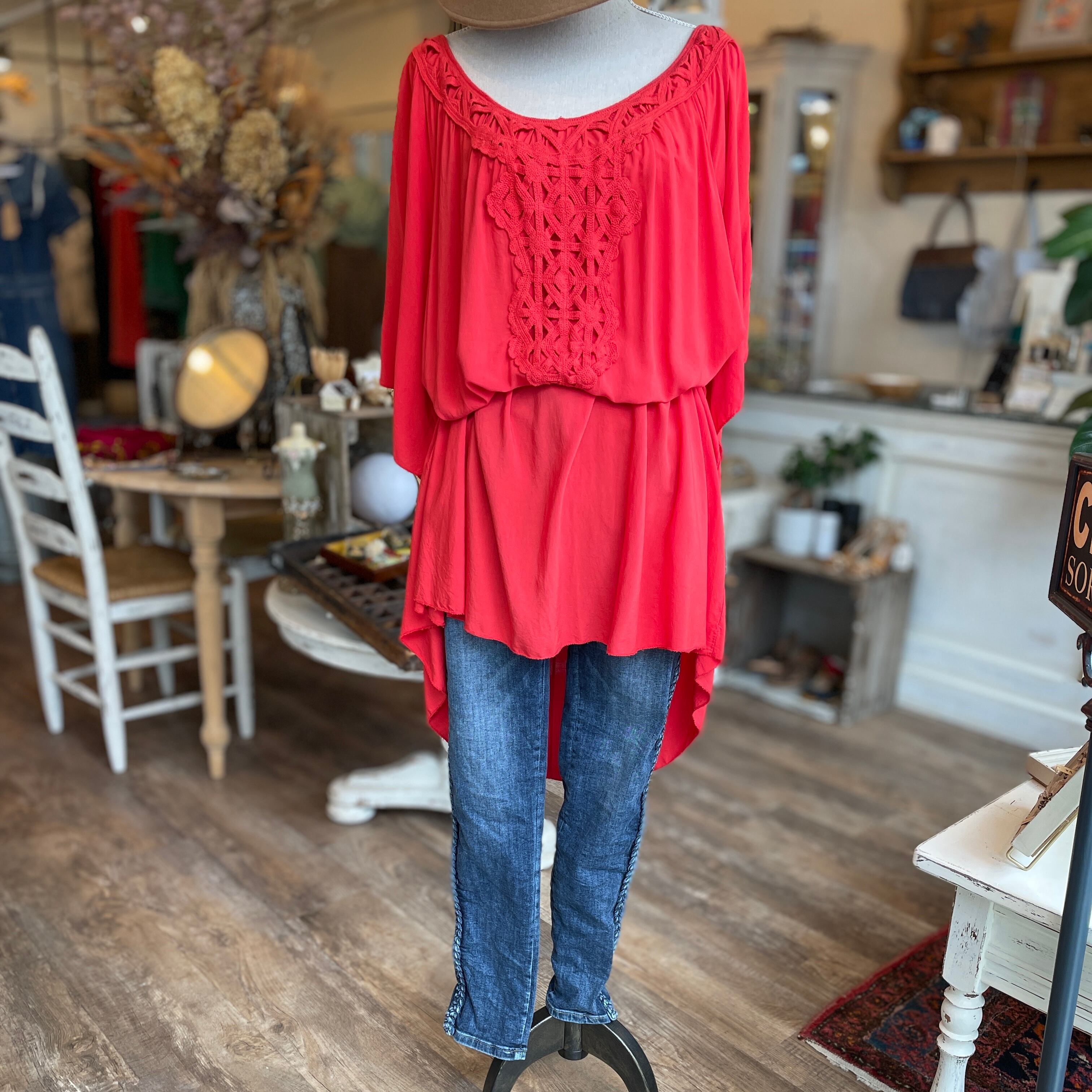 トップス: イタリア製 オープンショルダートップス<レッド>