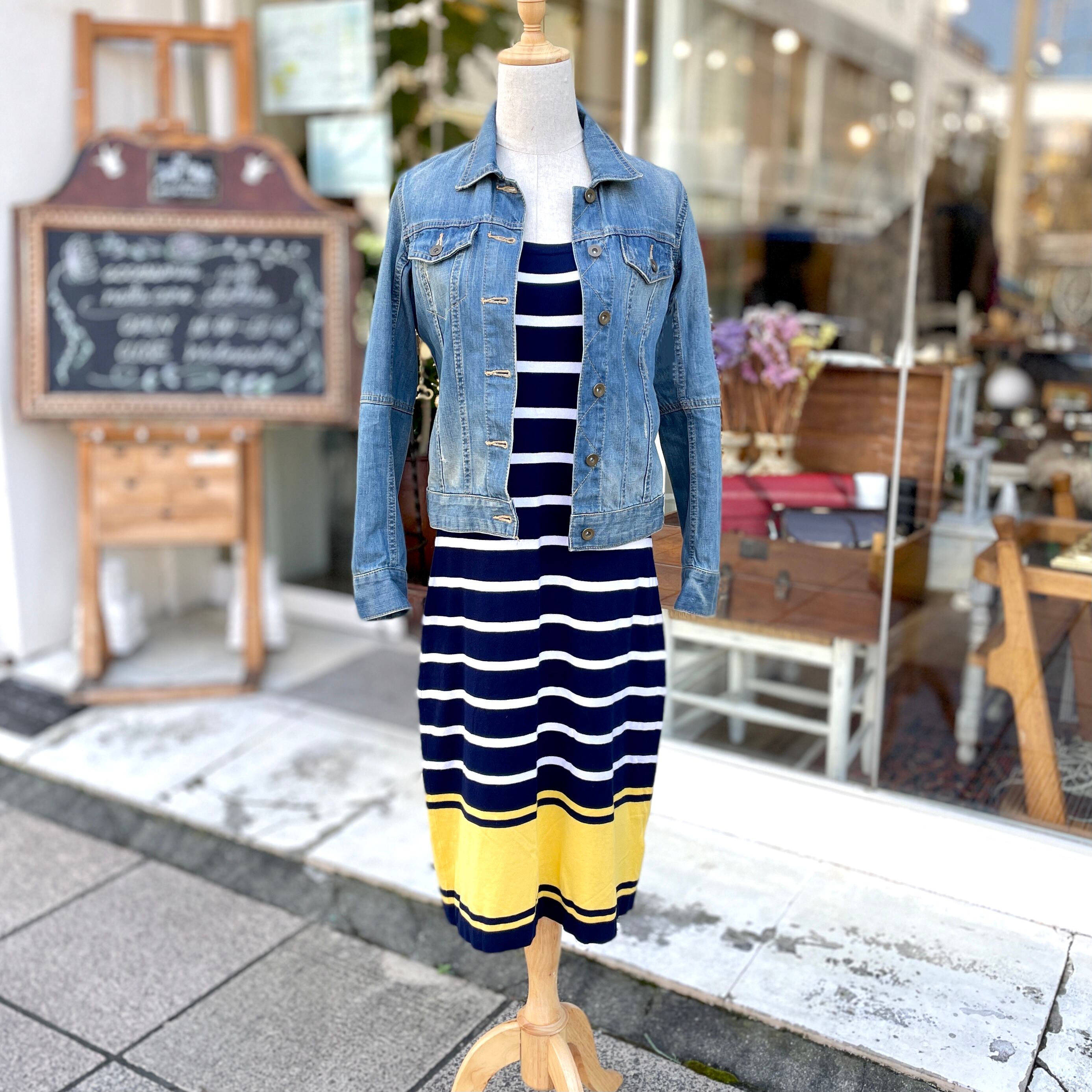 [コーデ買い] で【 30%OFF! 】2 点 古着 ICB デニムジャケット + フランス古着 laura kent ボーダーニットワンピース