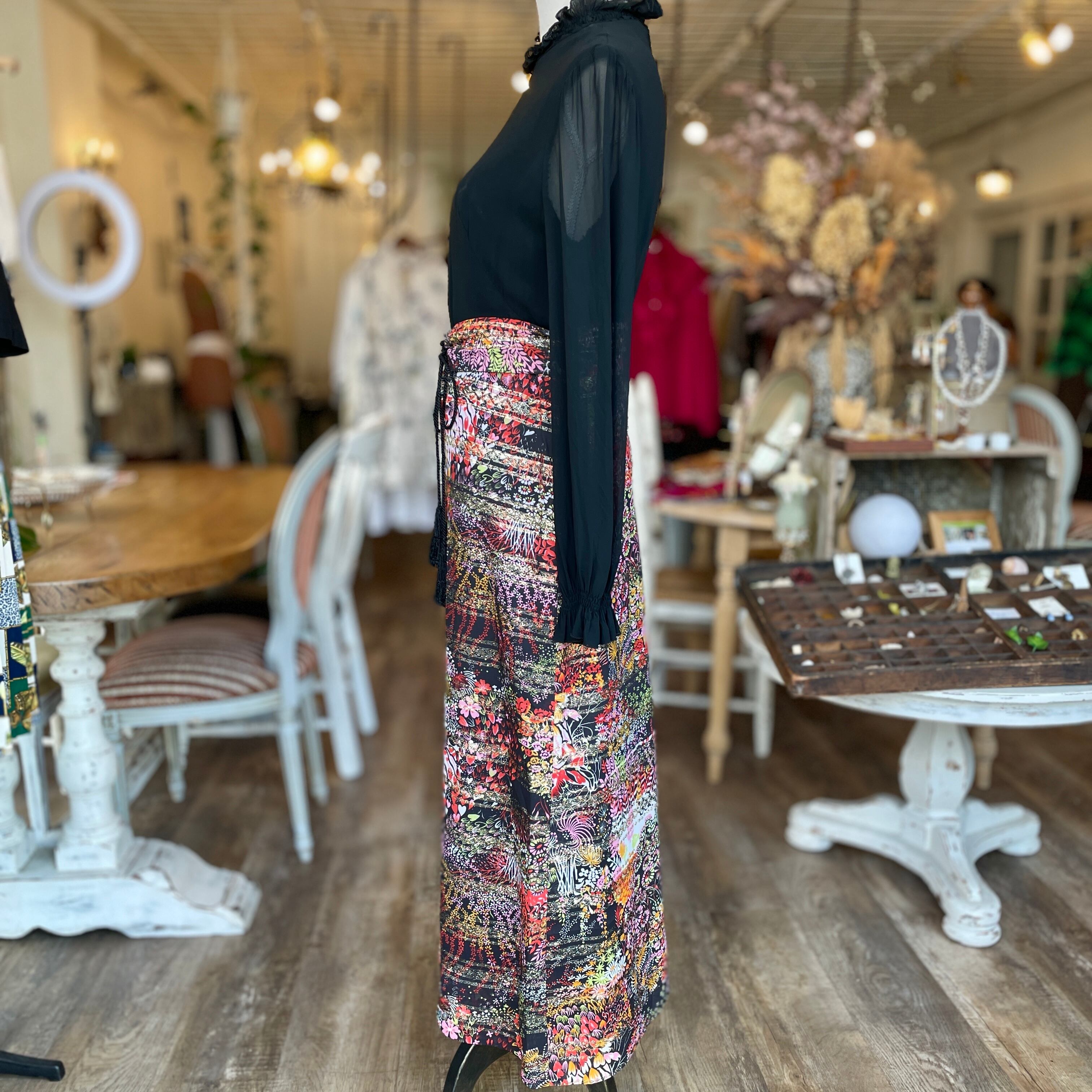 フランス古着 花柄スカートブラックドレス