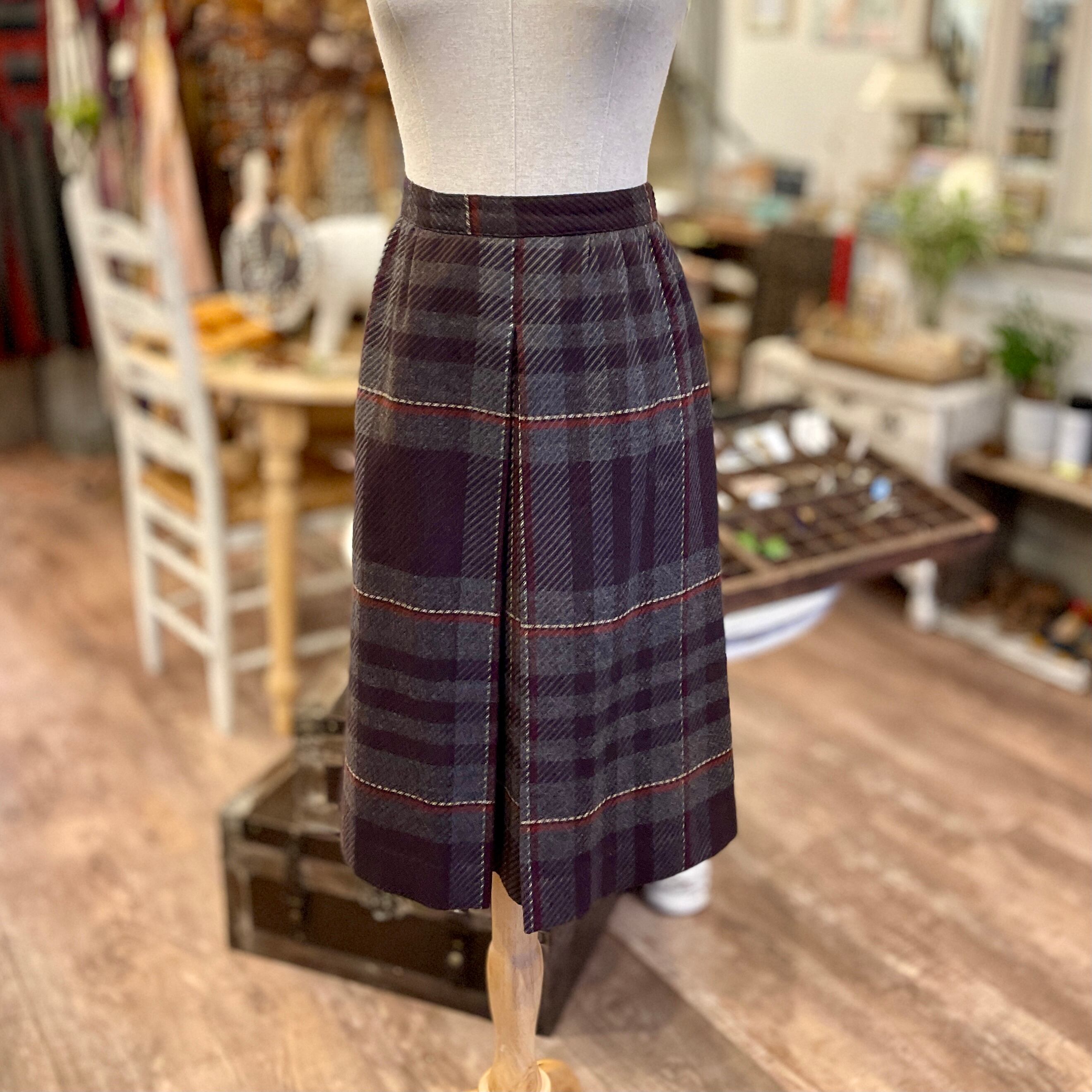暖かみのあるグレー色を基調としたタータンチェック柄のスカート。チェックスカートは秋冬の定番アイテムです♪