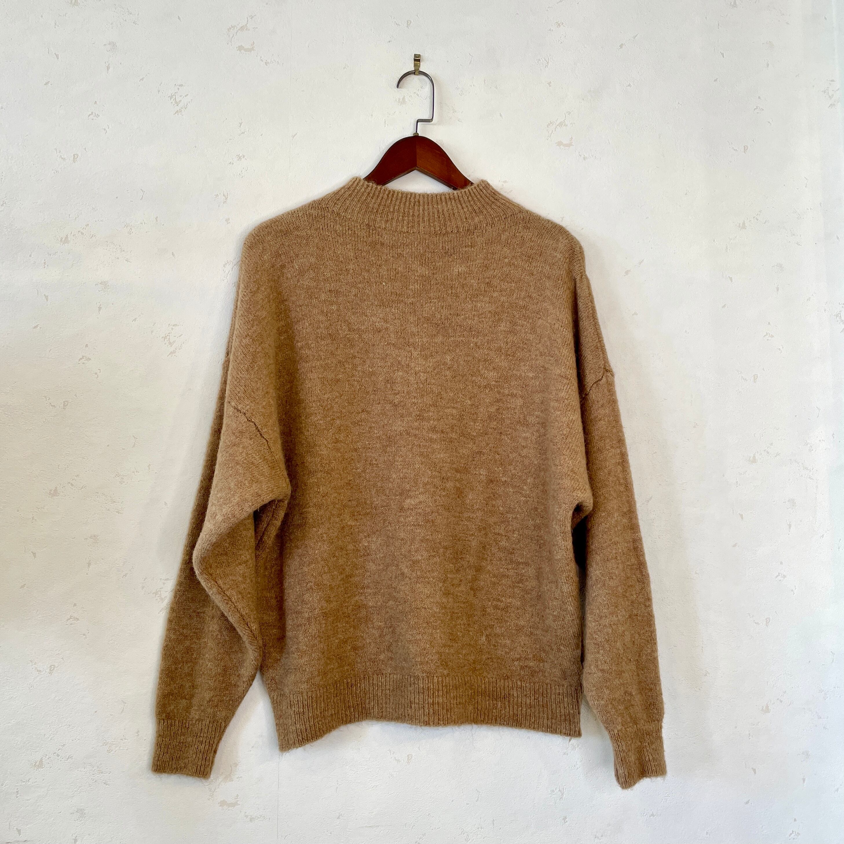 シンプルなブラウン色のハイネックニット。一枚持っていると着回ししやすい秋冬大活躍のアイテムです♪