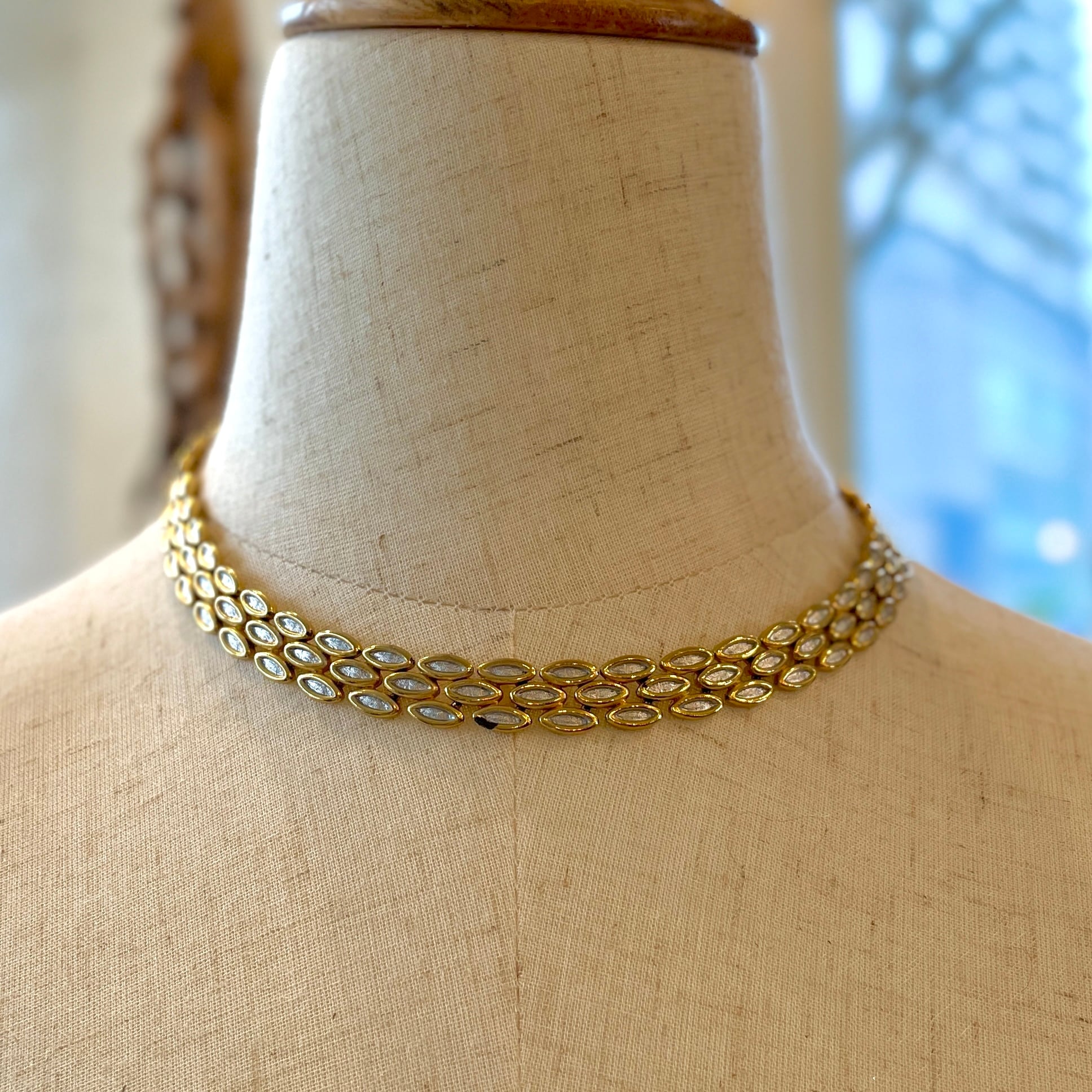 葉の様なモチーフデザインのネックレス。存在感があり、コーデをよりエレガントな印象に引き立てるアイテムです♪ 一部金色メッキが取れています。