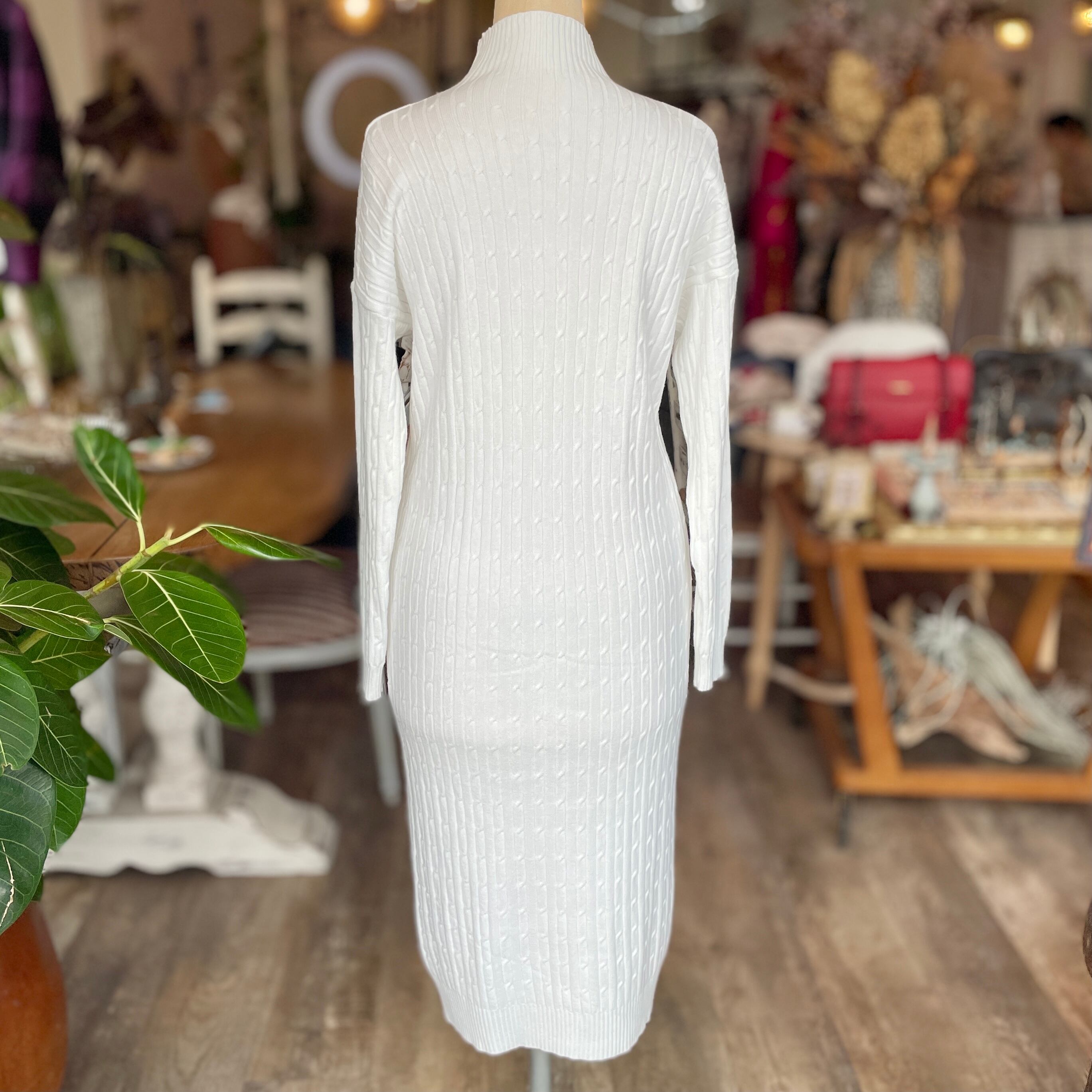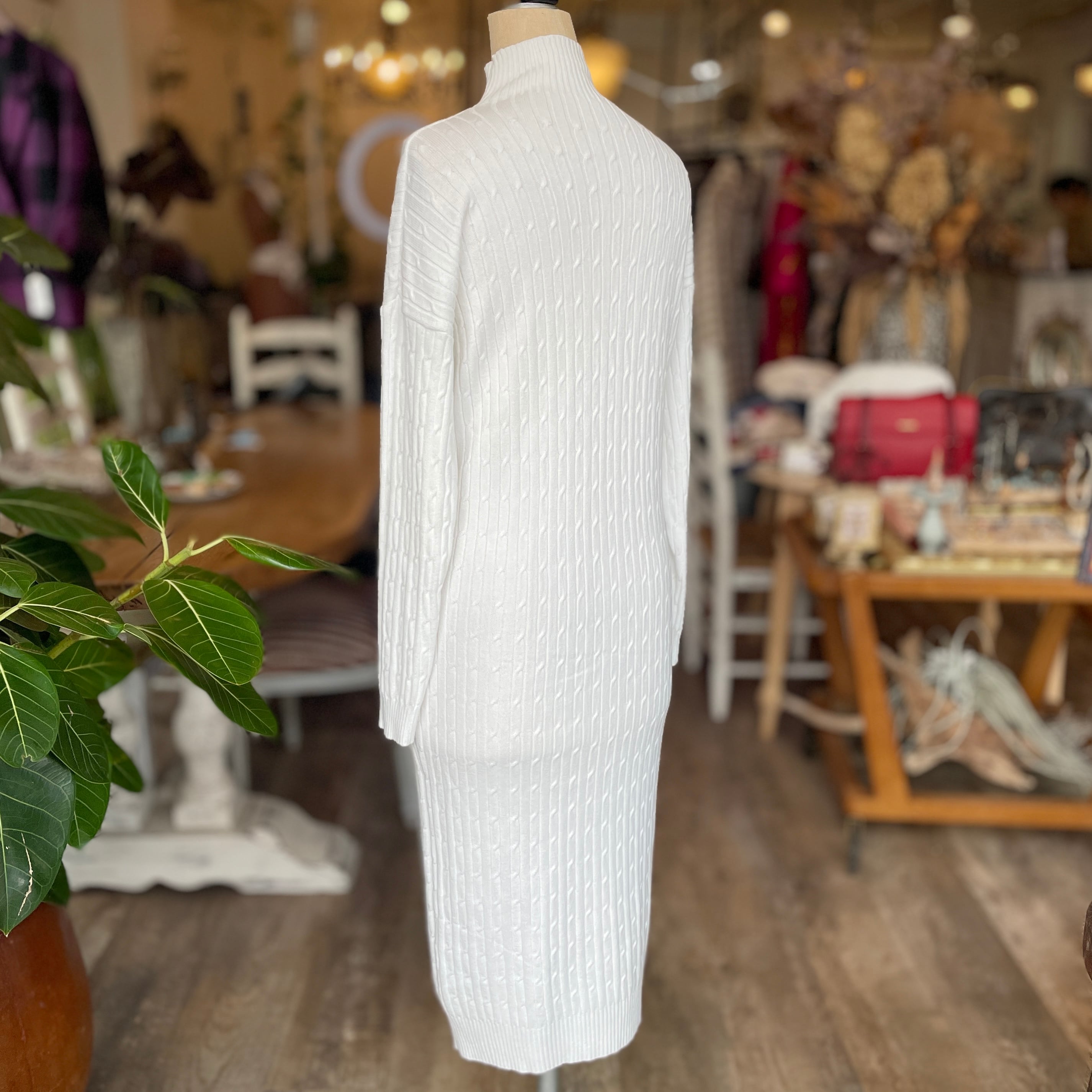 ハイネックケーブルニットワンピース<ホワイト> イタリア製