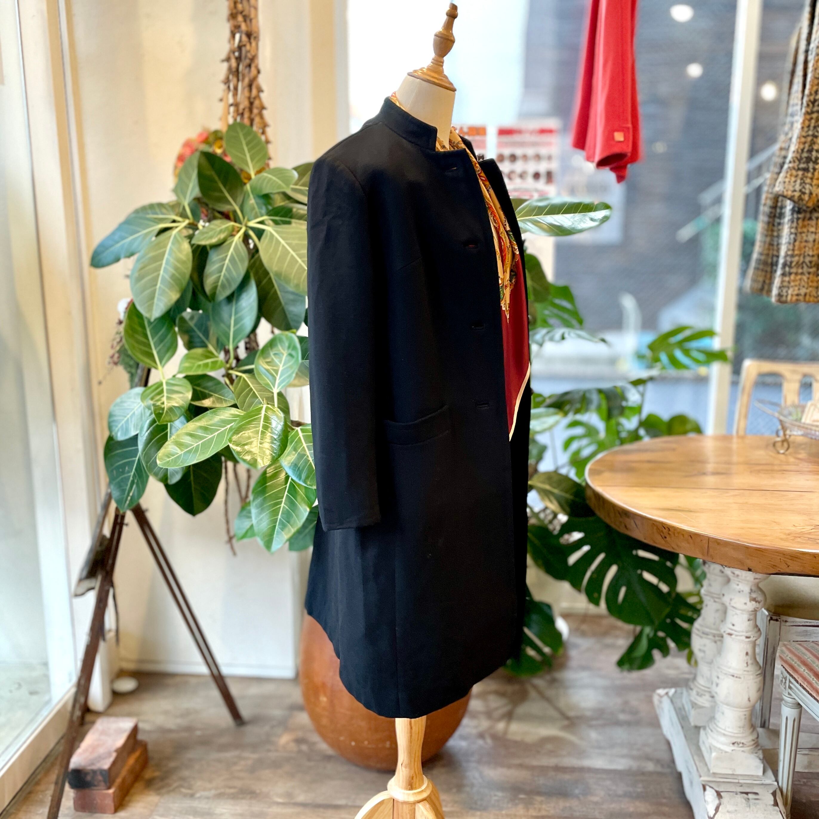 コート: フランス古着 ヴァージンウール100% スタンドカラーブラックコート