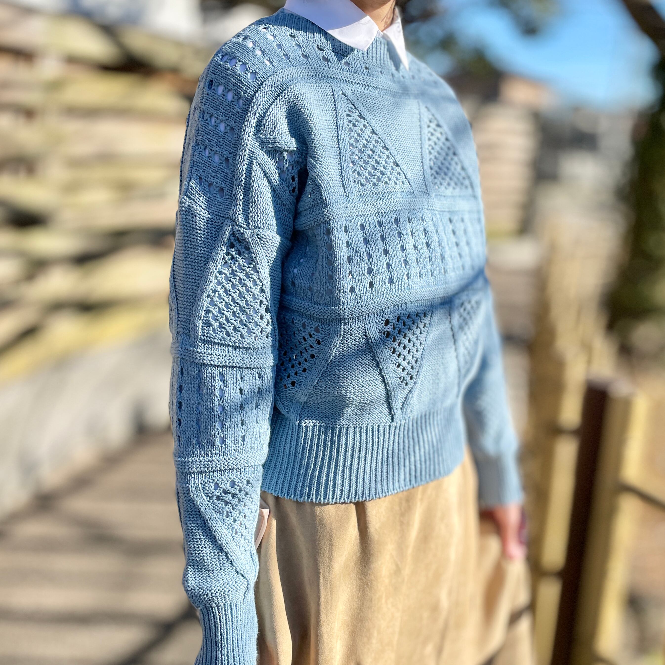 ニット: イタリア製 ViCOLO デザイン編み込みニット 3色展開<スカイブルー>