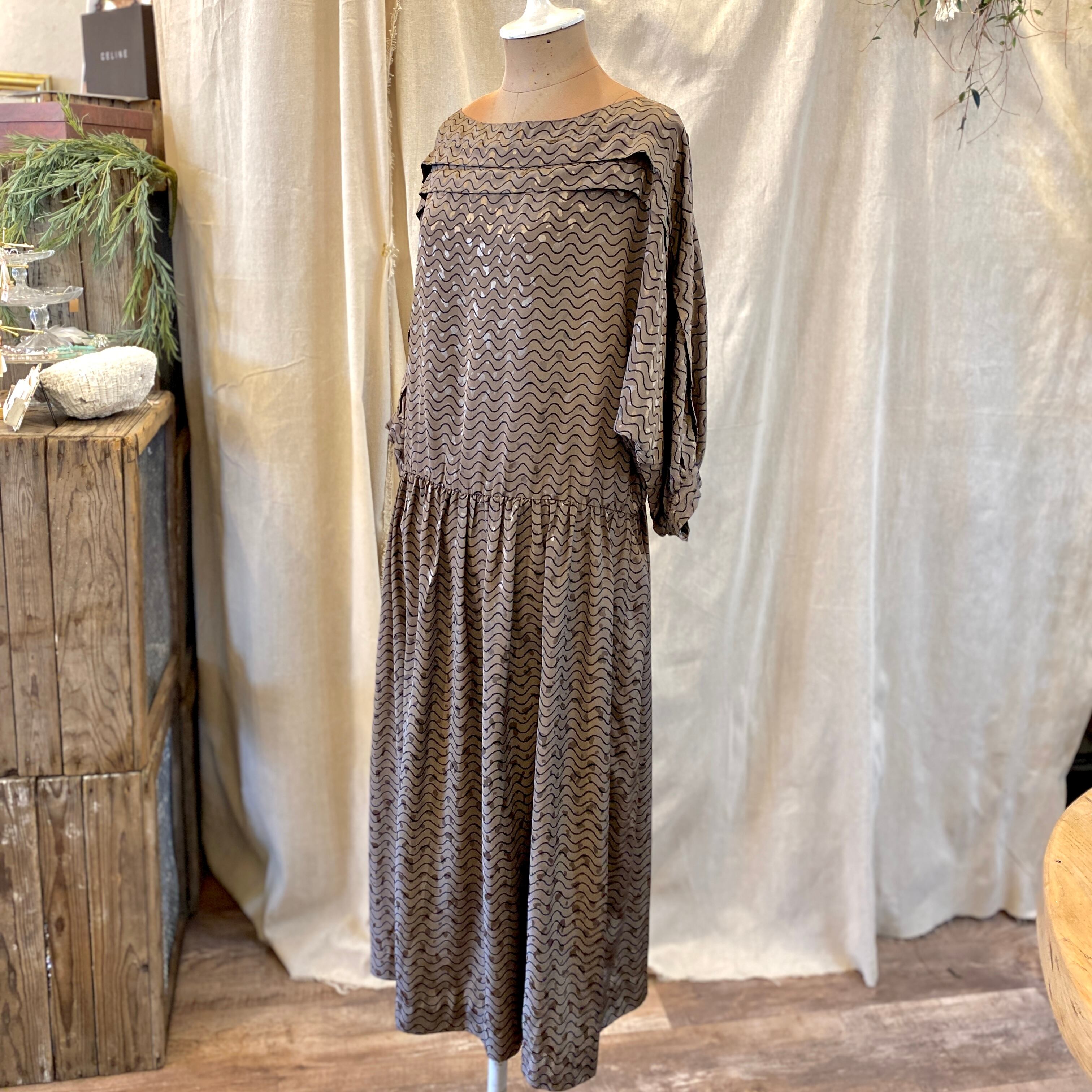 ドルマンスリーブでゆったりとしたシルエットのワンピース。波模様と薄っすらと見える水玉模様がポイントです♪