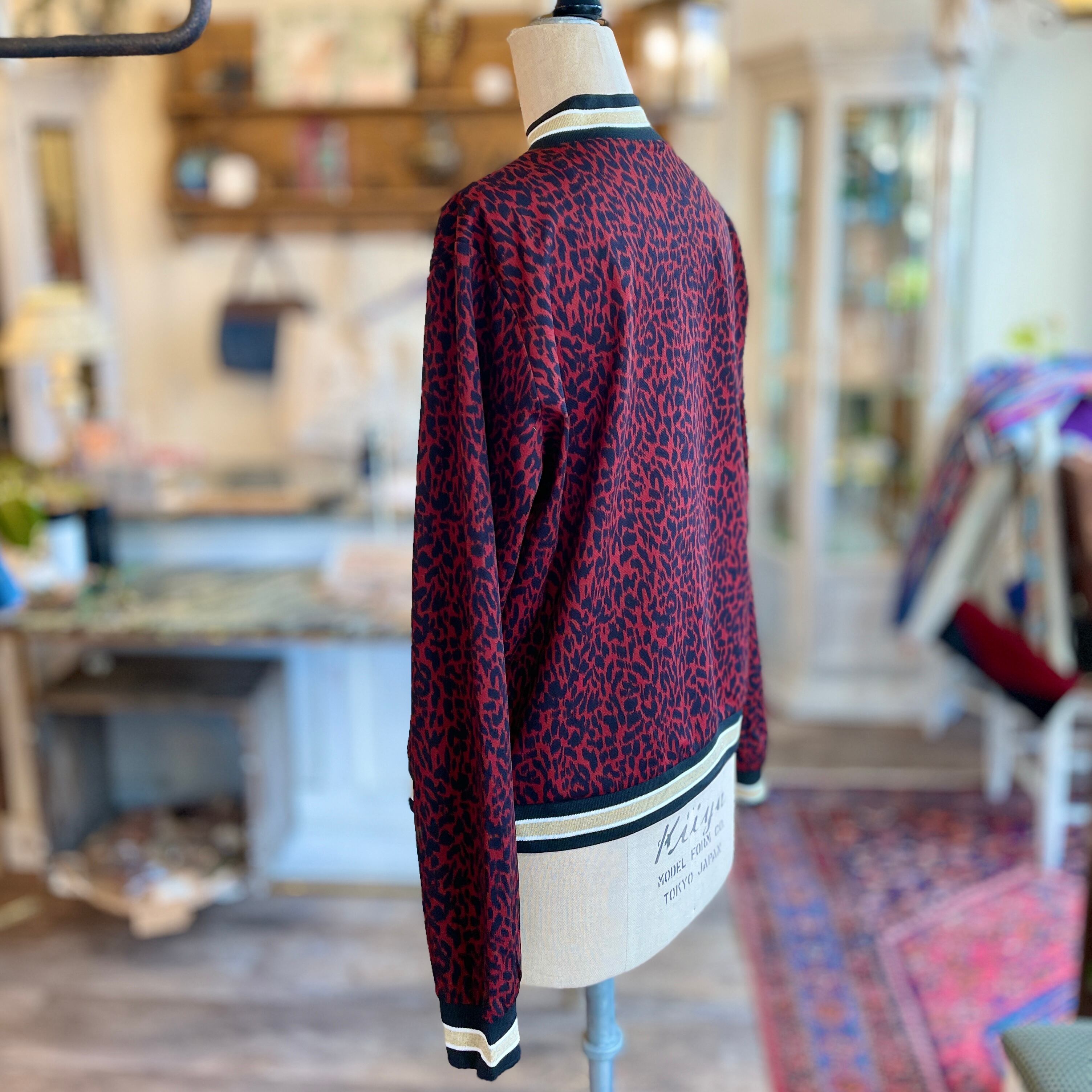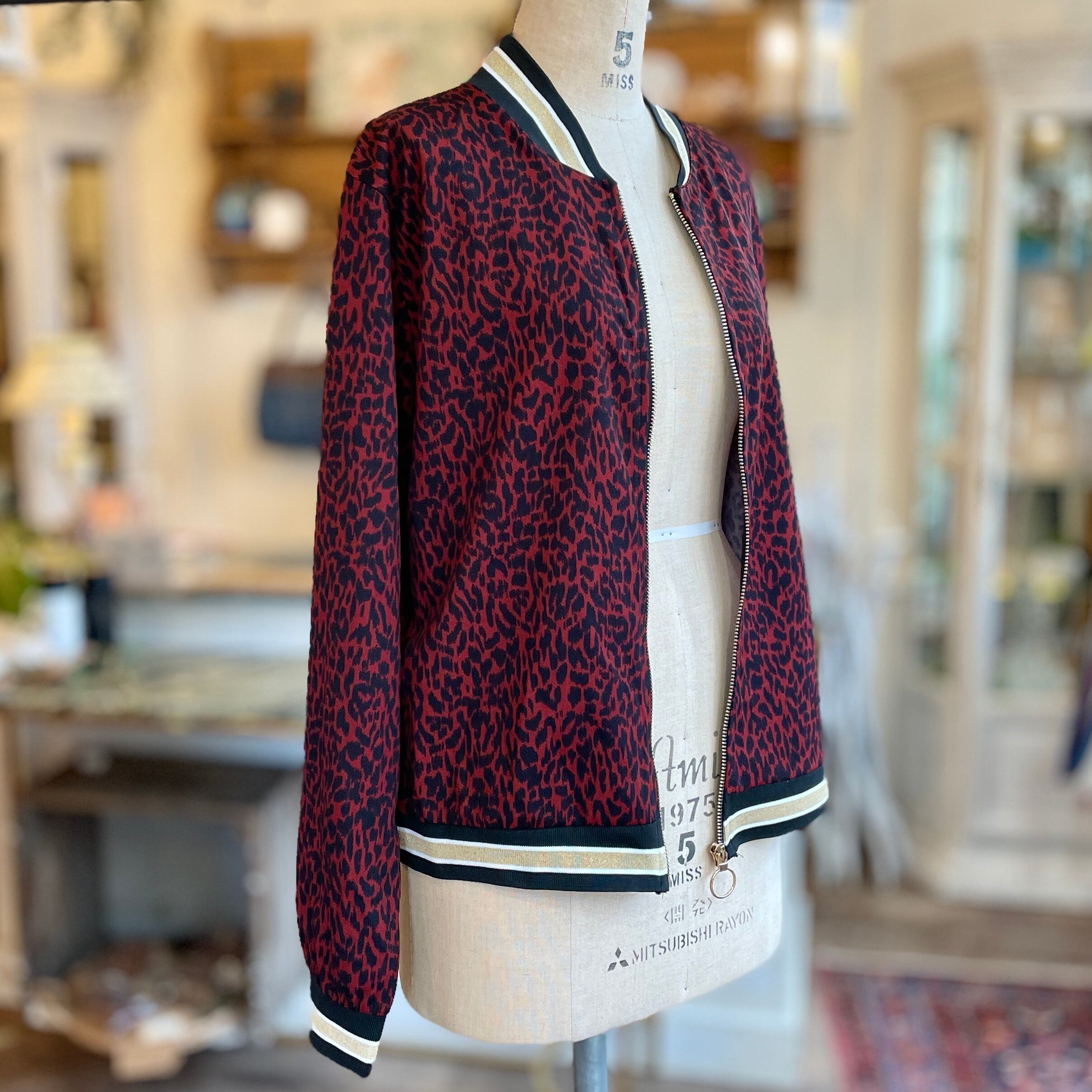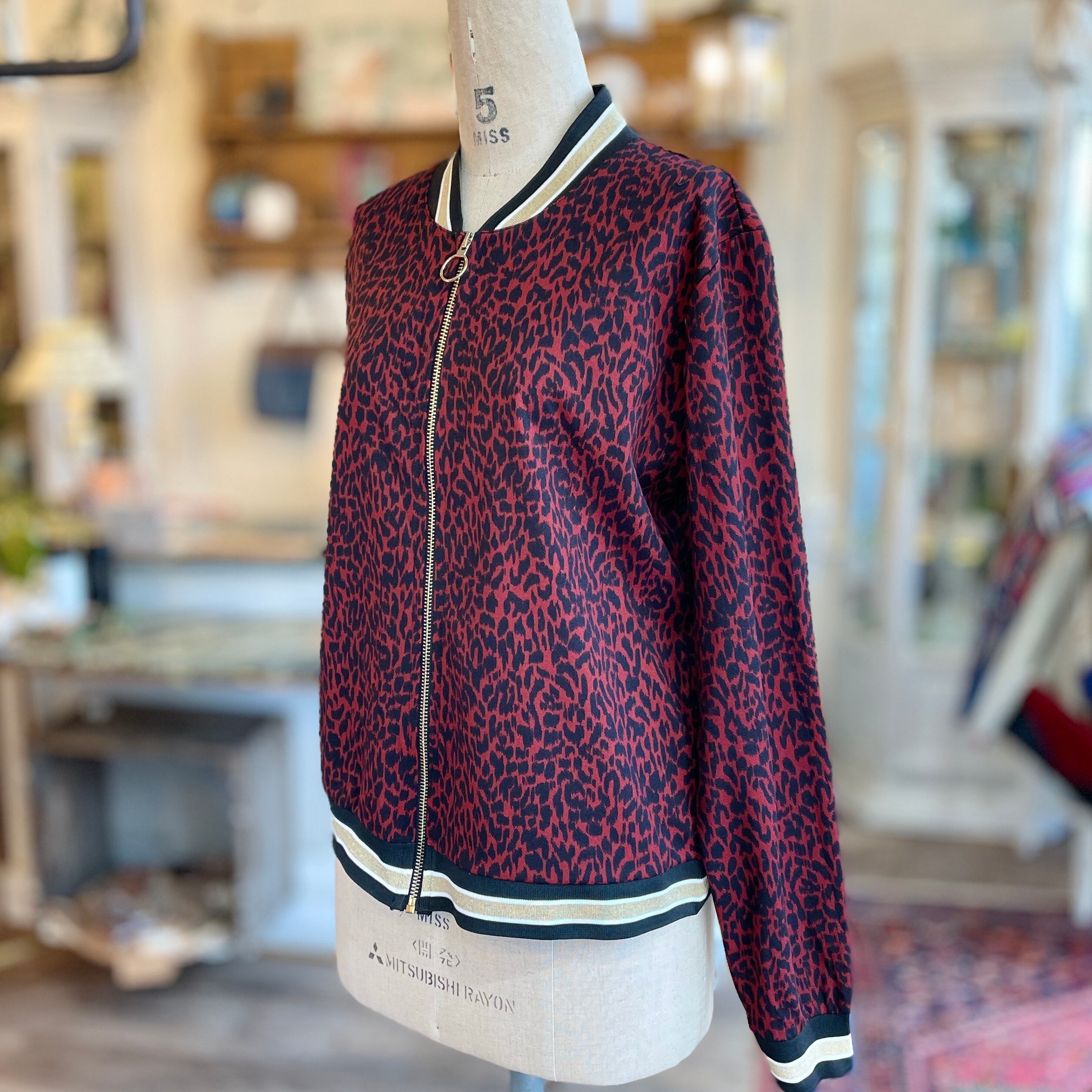 個性的なヒョウ柄のジャケット。軽い素材で、春のアウターとして大活躍のアイテムです。