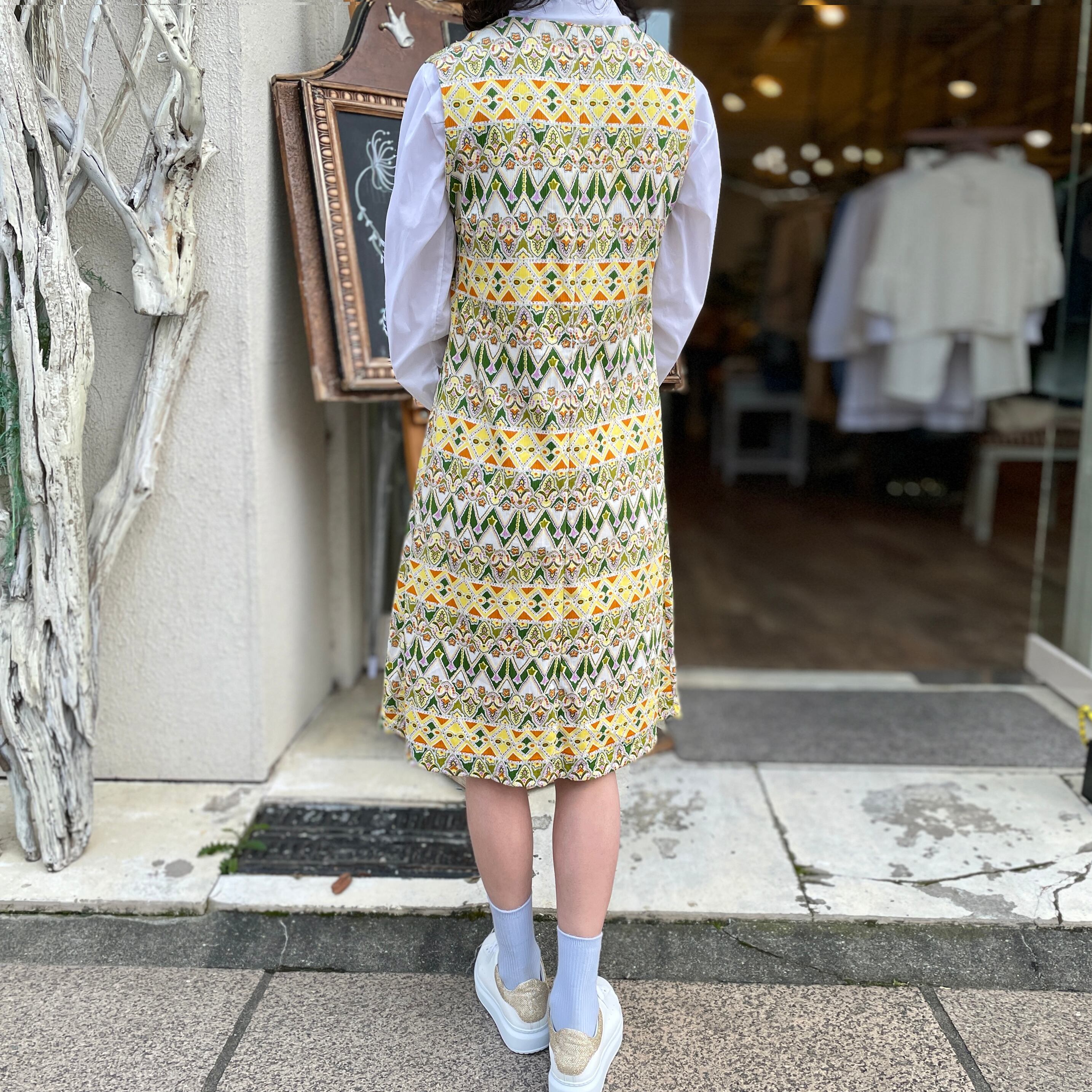 [コーデ買い] で【 30%OFF! 】2点 イタリア製 シャツワンピース<ホワイト> + フランス古着 CREATION ペイズリー花柄ノース
