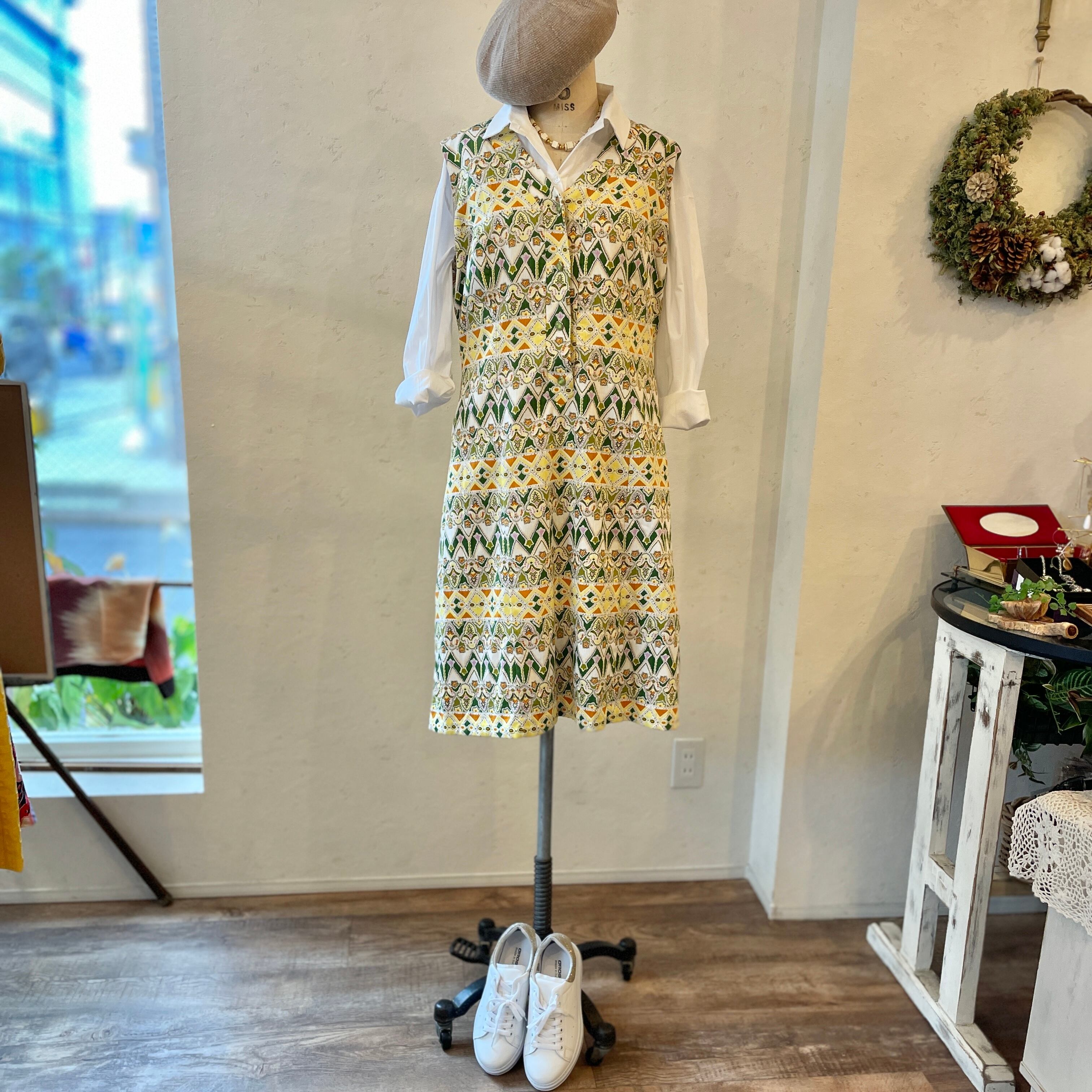 ワンピース: フランス古着 CREATION ペイズリー花柄ノースリーブワンピース
