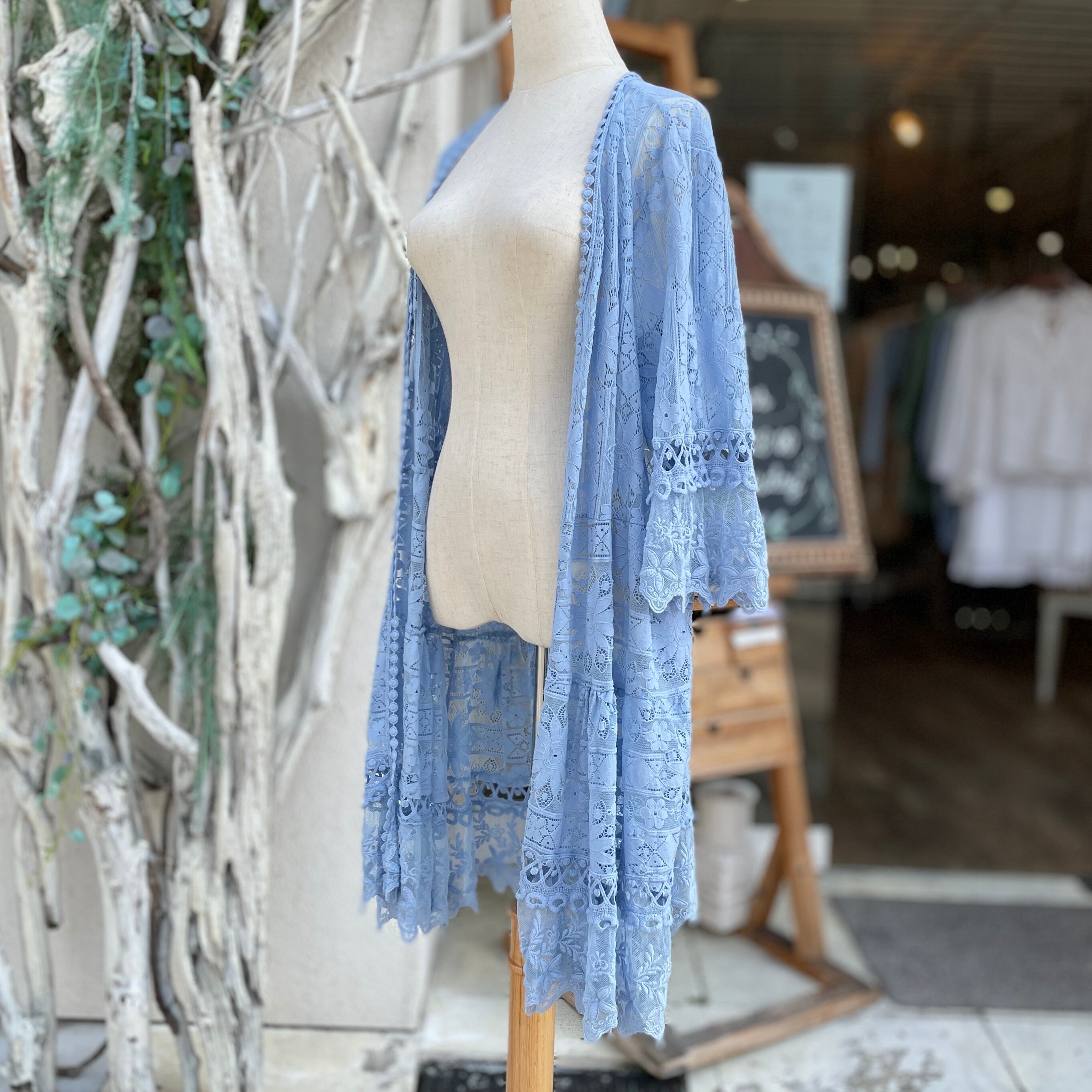 たっぷり使ったレースがキュートなデザインで、コーディネイトに取り入れることでゴージャスな印象になります。袖口と裾の波のようなデザインがとても素敵です。