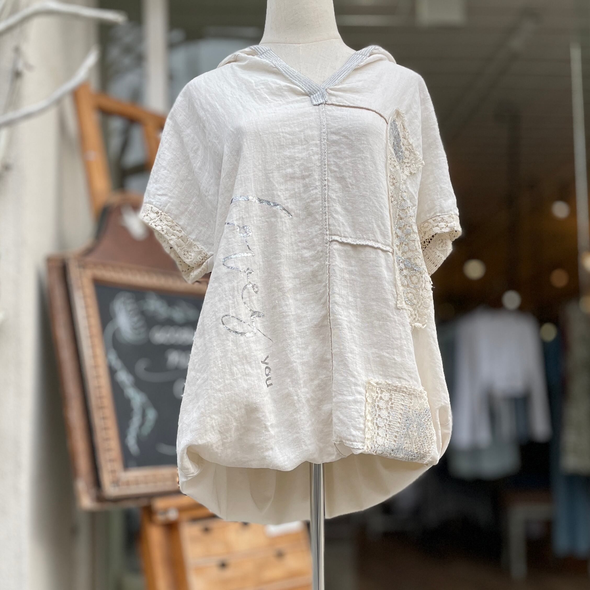 イタリア製 Loves you コットンリネンフード付きワンピース<アイボリー>