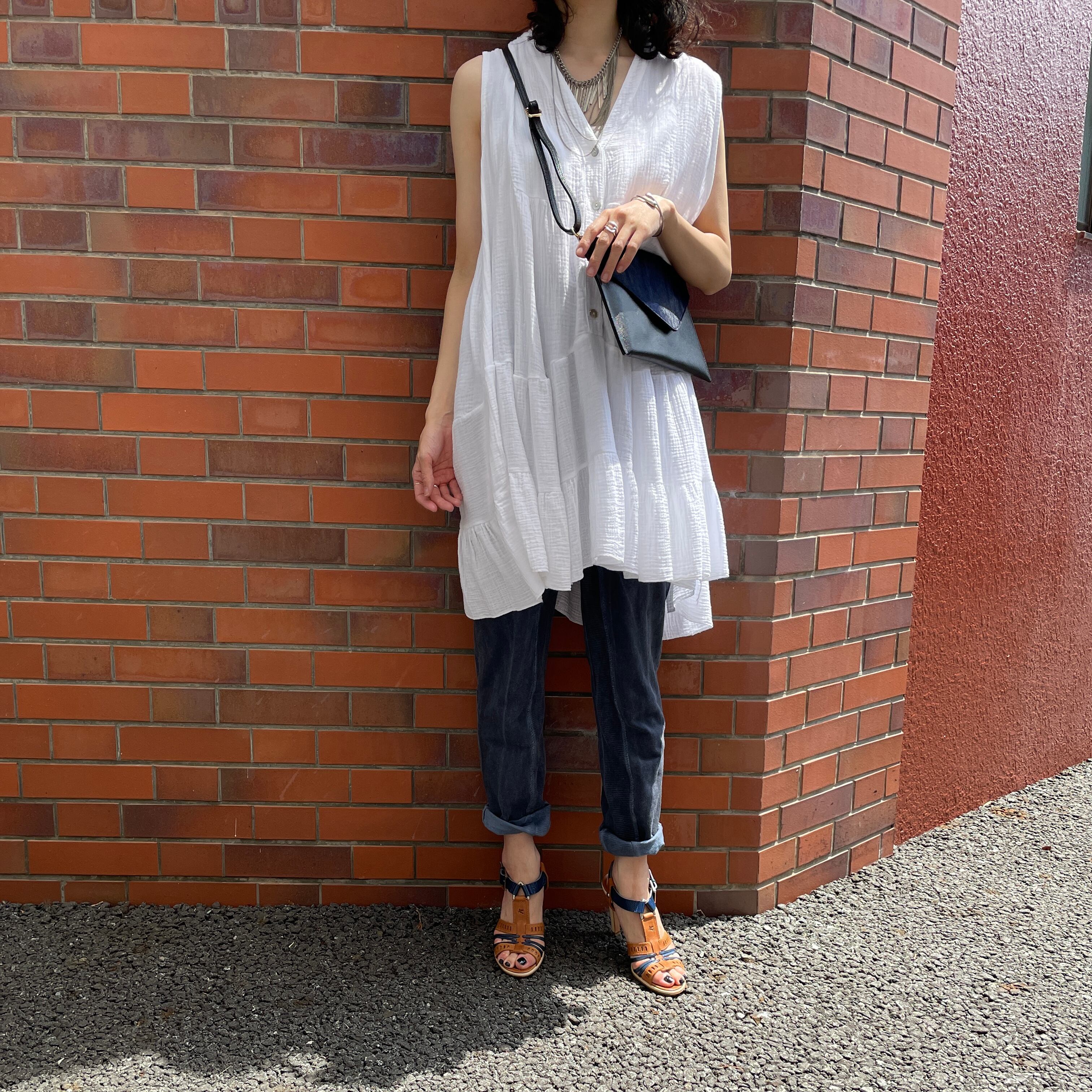 ワンピース: イタリア製 Aラインコットンノースリーブワンピース 4色(オレンジ/グレージュ/ピンク/ホワイト)