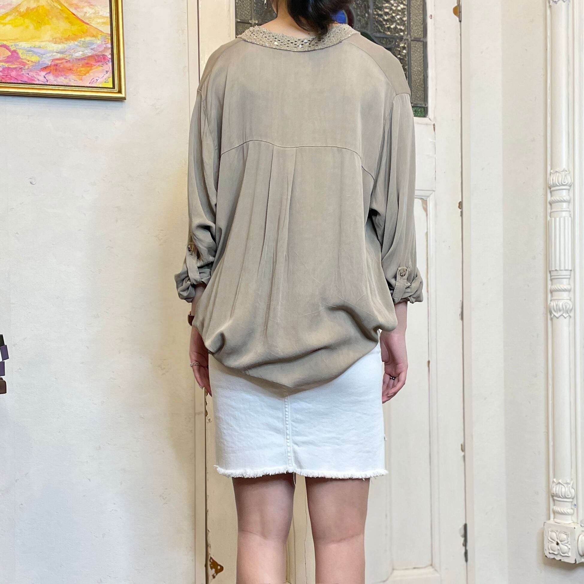 トップス: イタリア製 スパンコールトップス<ベージュ>