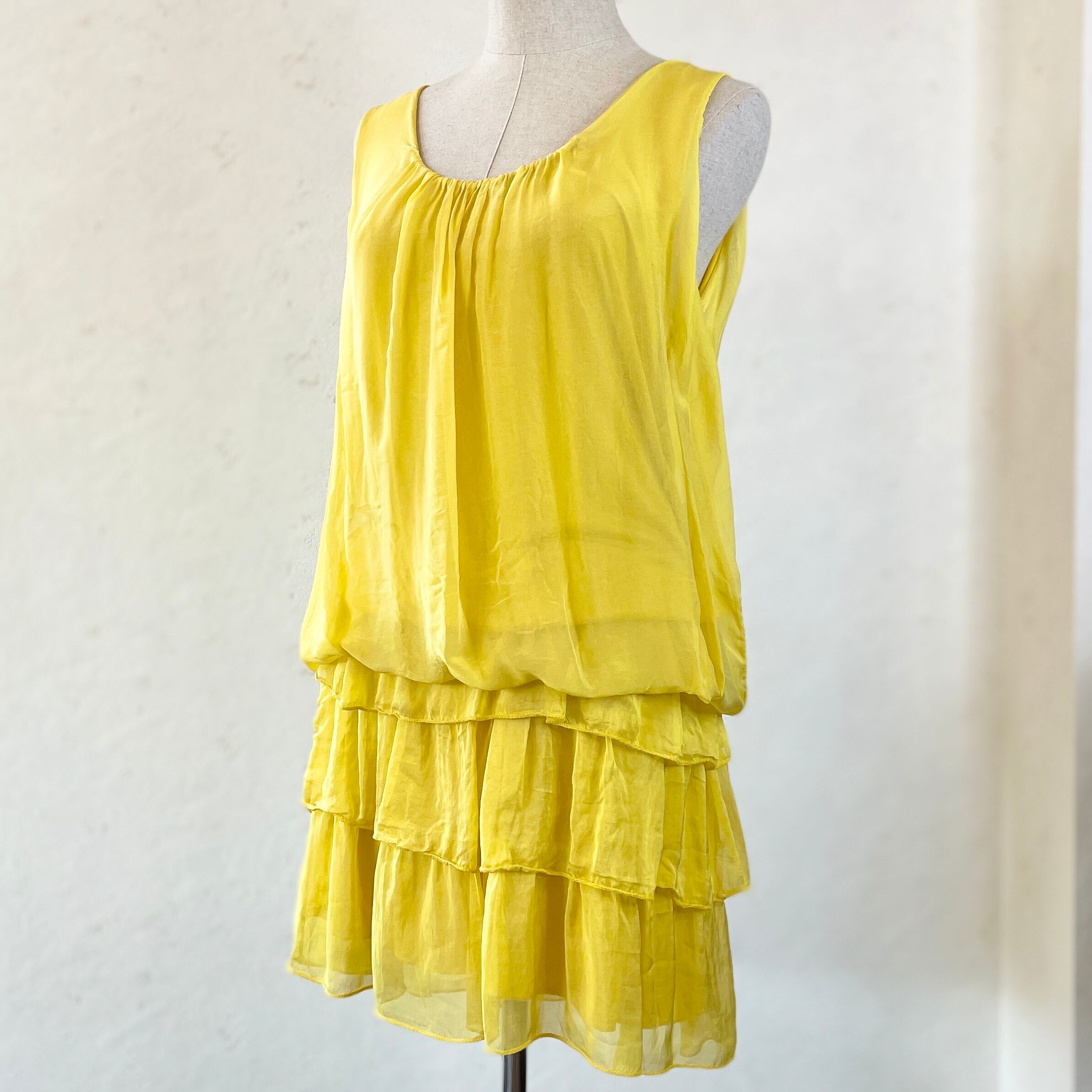 イタリア製 シルク混シフォンノースリーブチュニック<イエロー>