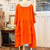ワンピース: イタリア製 麻100%後ろボタンポケットワンピース<オレンジ>
