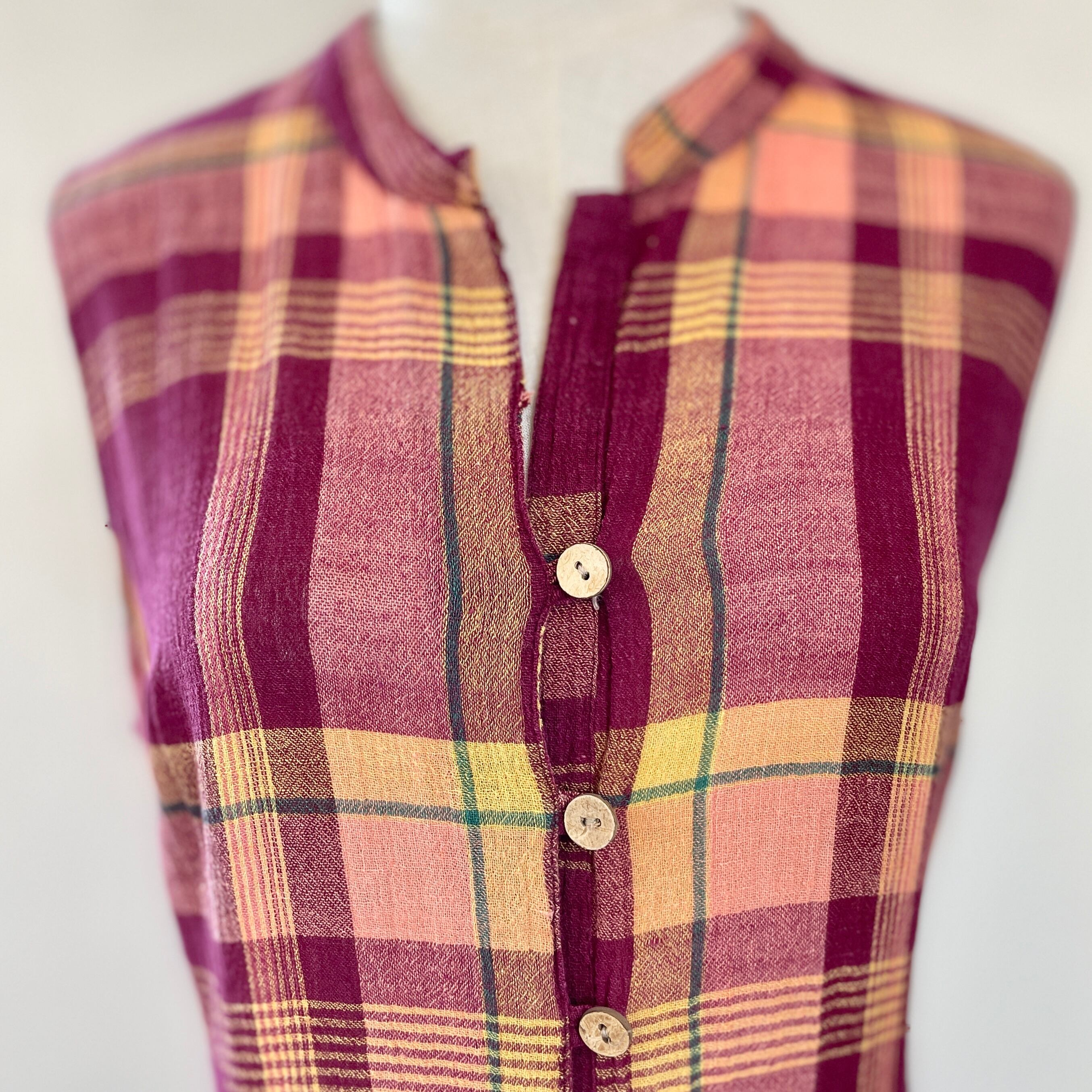 ヨーロッパ古着 CROCIERA チェックスリットノースリーブワンピース