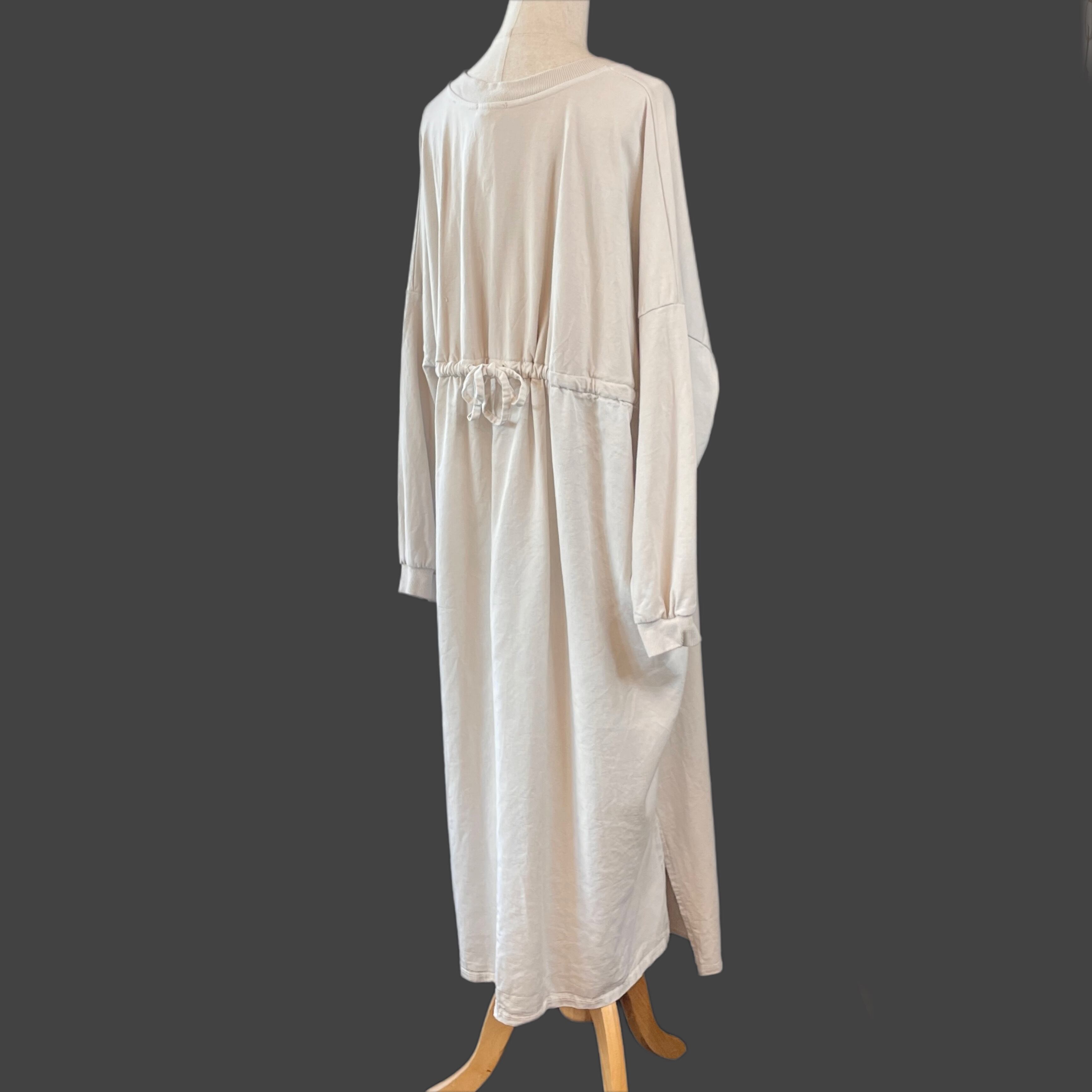 イタリア製 Vネック スウェットワンピース<アイボリー>