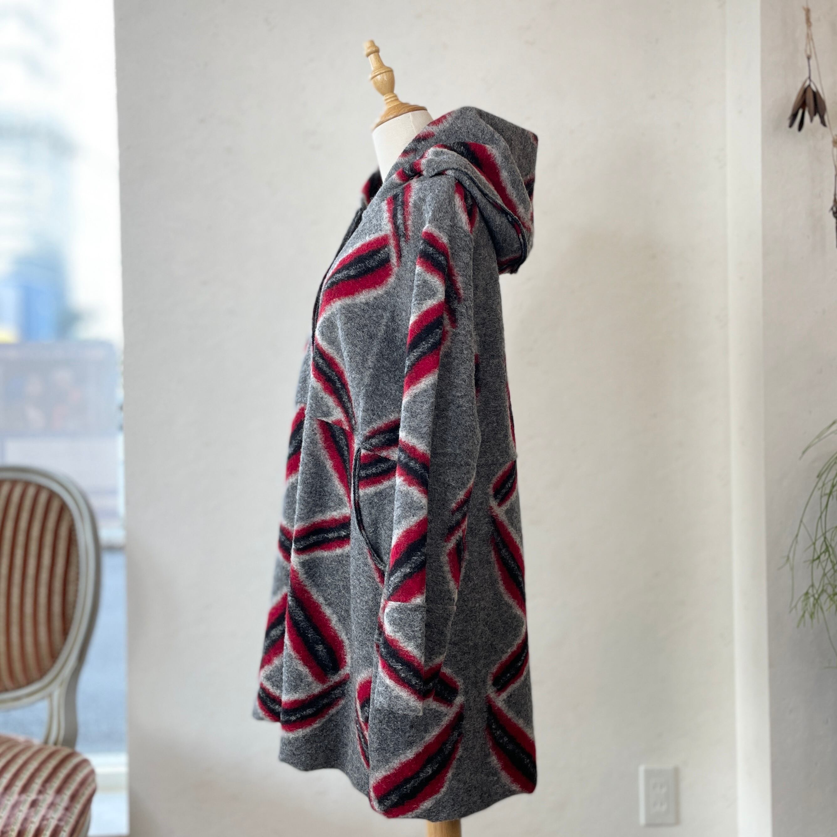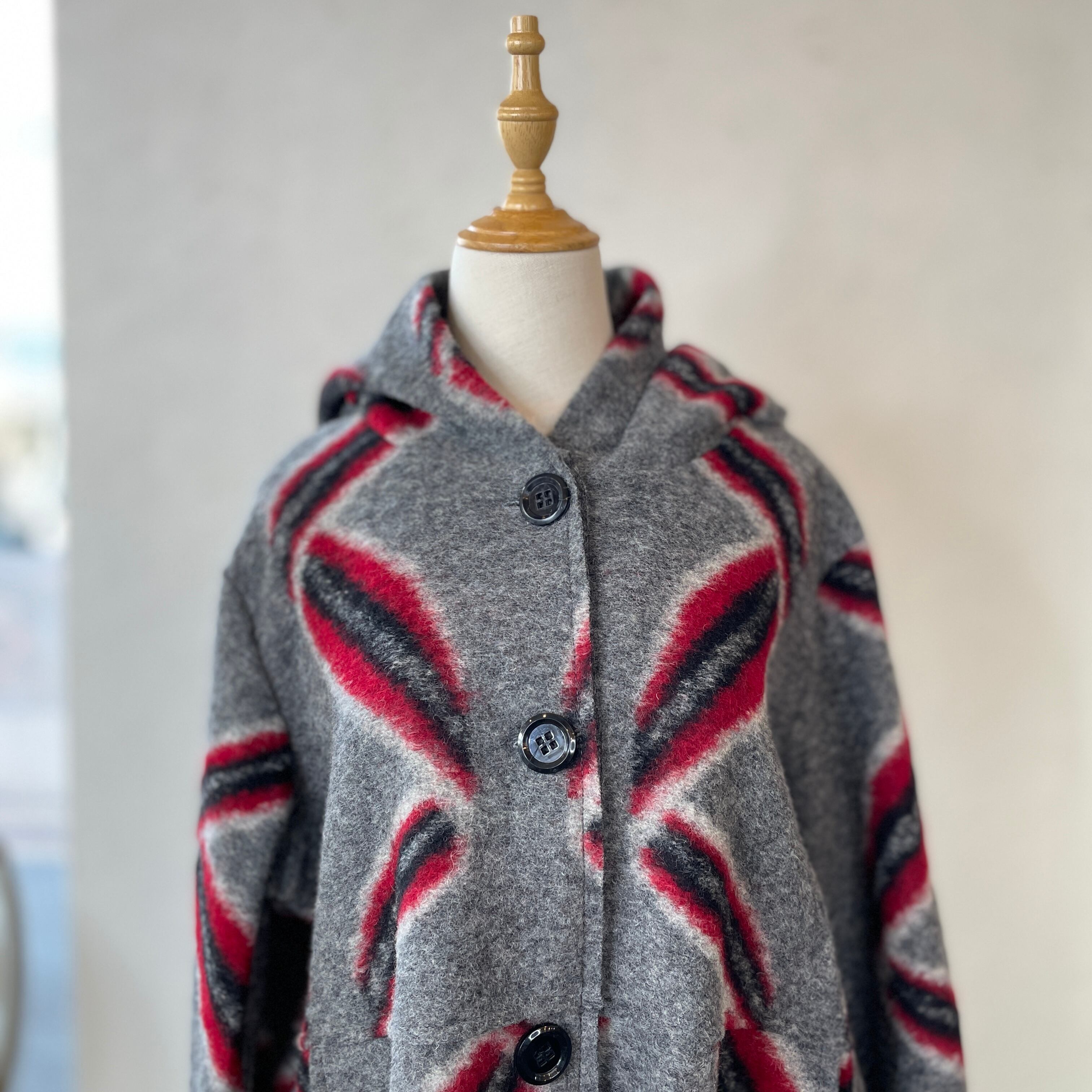70%ウール配合のとても暖かいコートです。大柄が印象的で主役にぴったりなアイテムです。グレー、ネイビー、ブラウンの3色からお選びいただけます。