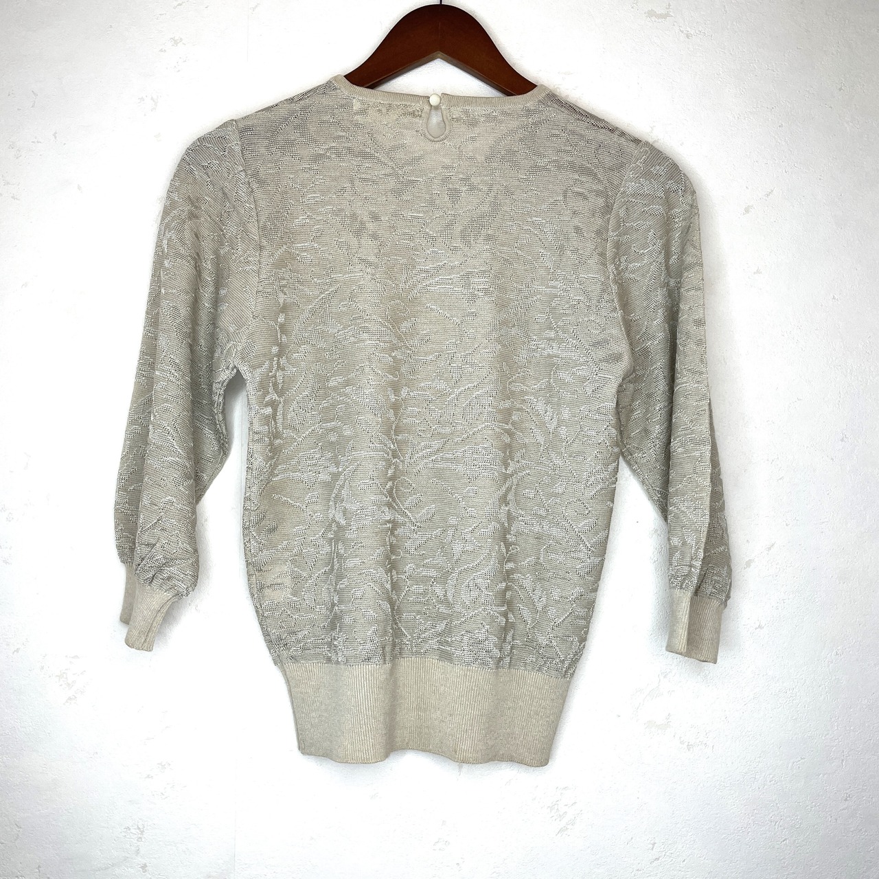 古着 MAGNALAUDE ベージュ透かし編みレースカットソー